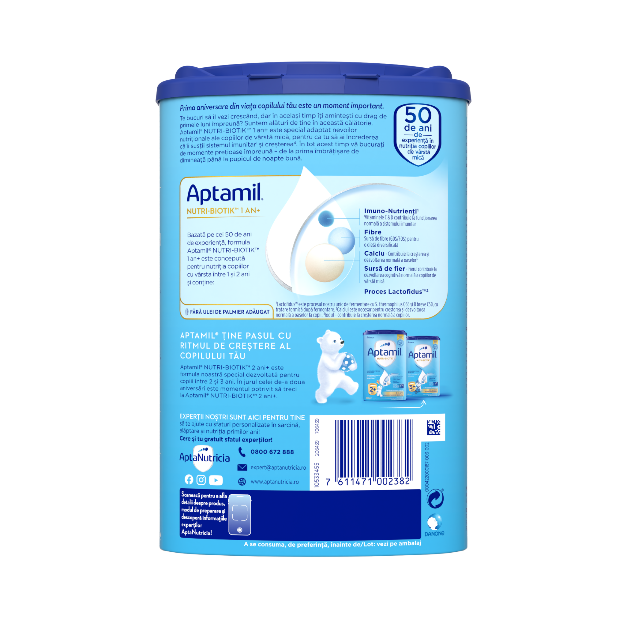 Bazată pe cei 50 de ani de experiență, formula Aptamil® NUTRI-BIOTIK™ 1 an+ este concepută pentru nutriția copiilor cu vârsta între 1 și 2 ani și conține:
