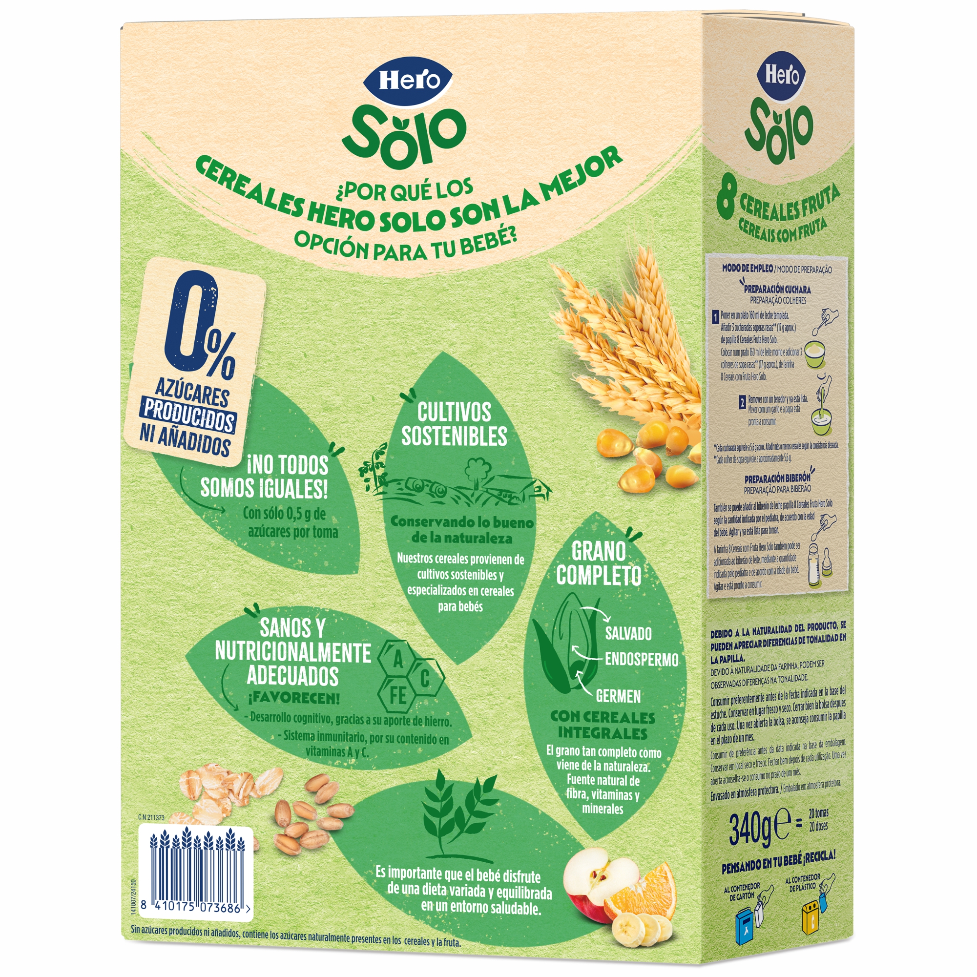 Hero Baby 8 cereale cu fructe fara lapte - cu cereale integrale, fara ulei de palmier, fara lactoza.