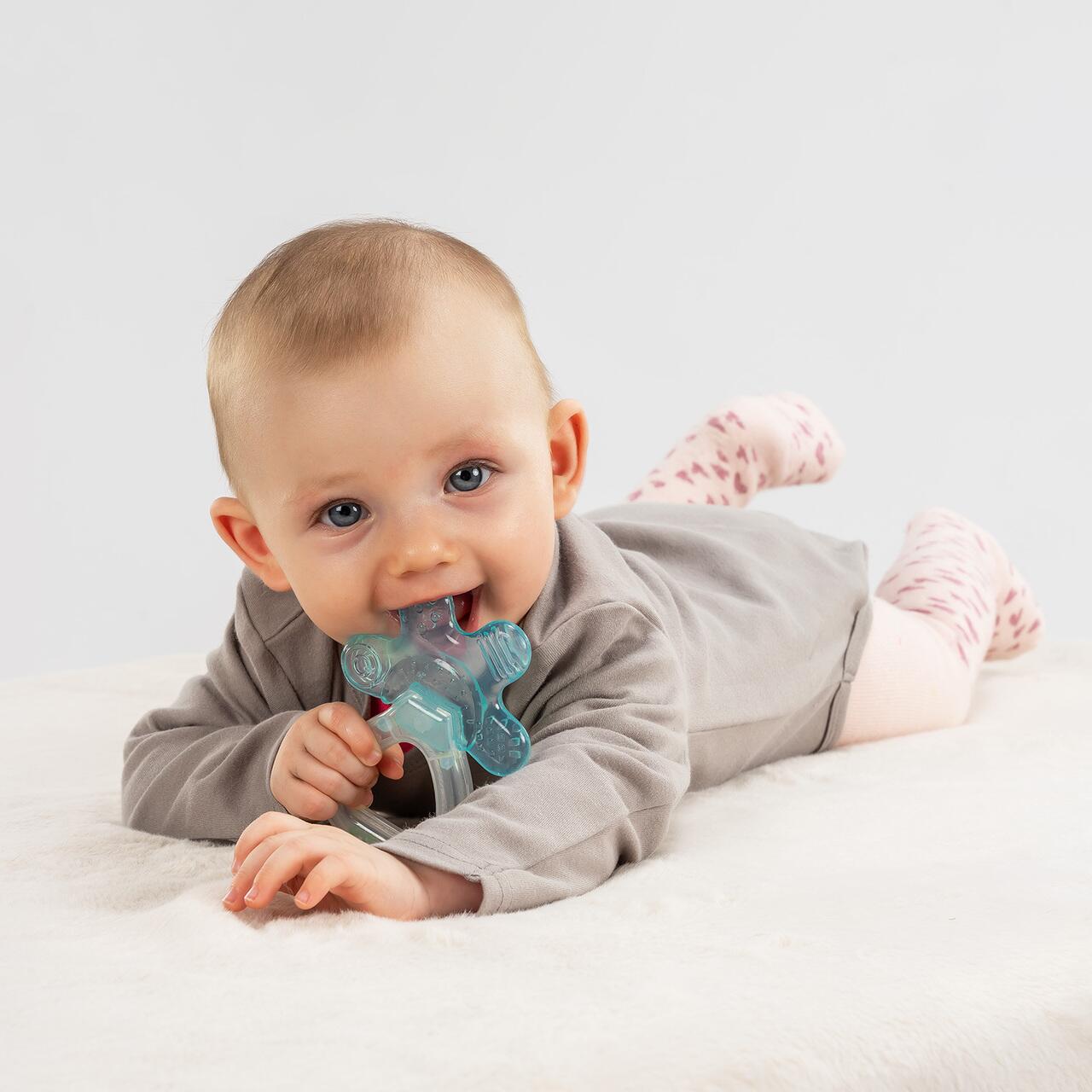 Atunci când apar primii dințișori, calmarea durerii gingivale și sprijinirea dezvoltării dentiției sunt esențiale. Inelul pentru dentiție Reer Bite&Cool oferă o soluție sigură și eficientă pentru confortul bebelușului. Umplut cu apă, acesta poate fi răcit în frigider pentru a elibera o senzație plăcută de răcoare care aliniază disconfortul cauzat de creșterea dinților.