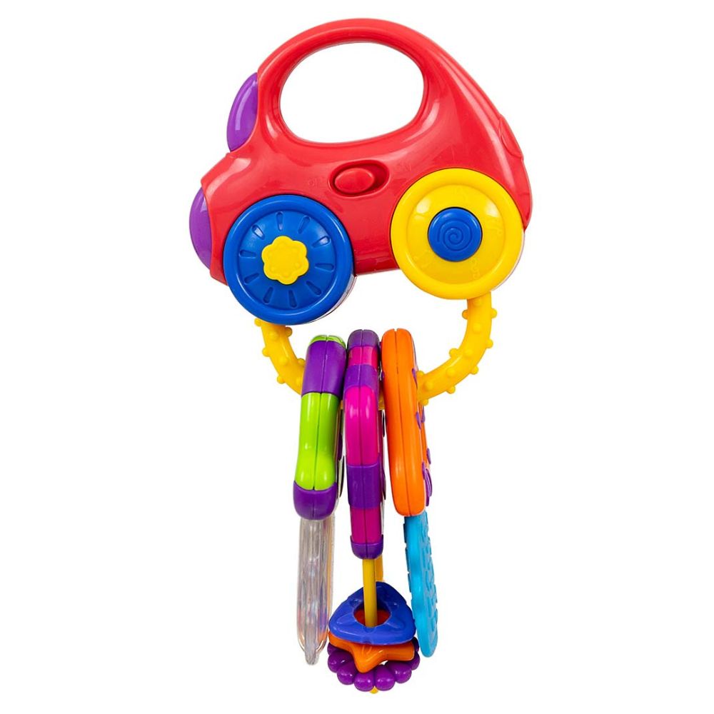 Trei chei sunt atasate la masina. Fiecare dintre chei are o forma diferita: prima este un zornaitura transparenta cu bile, a doua - o cheie cu discuri colorate in miscare, a treia este un dintitor de cauciuc cu insertii.