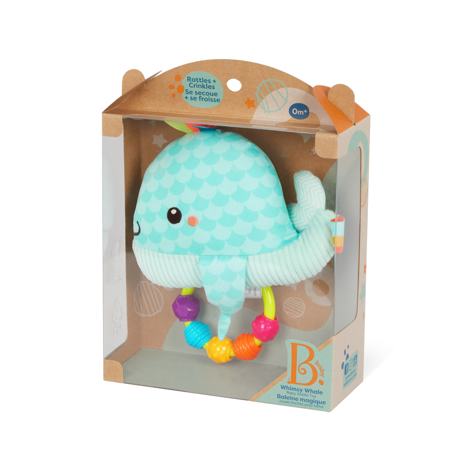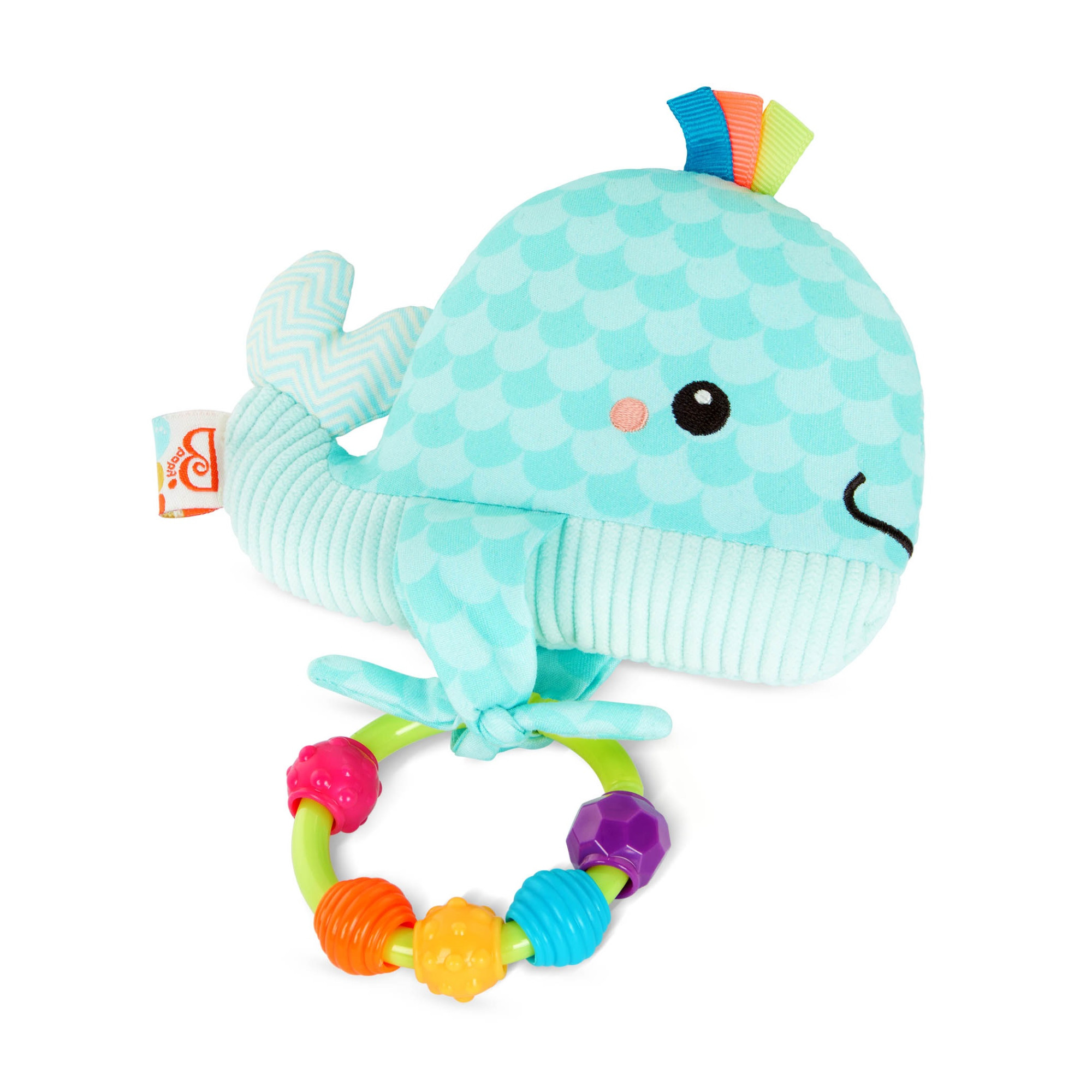 Jucăria senzorială de dentiție în formă de balenă de la B.Toys este special concepută pentru a oferi confort bebelușilor în perioada erupției dentare. Realizată din materiale moi și plăcute la atingere, aceasta combină elemente tactile și sonore pentru o experiență de joacă completă.