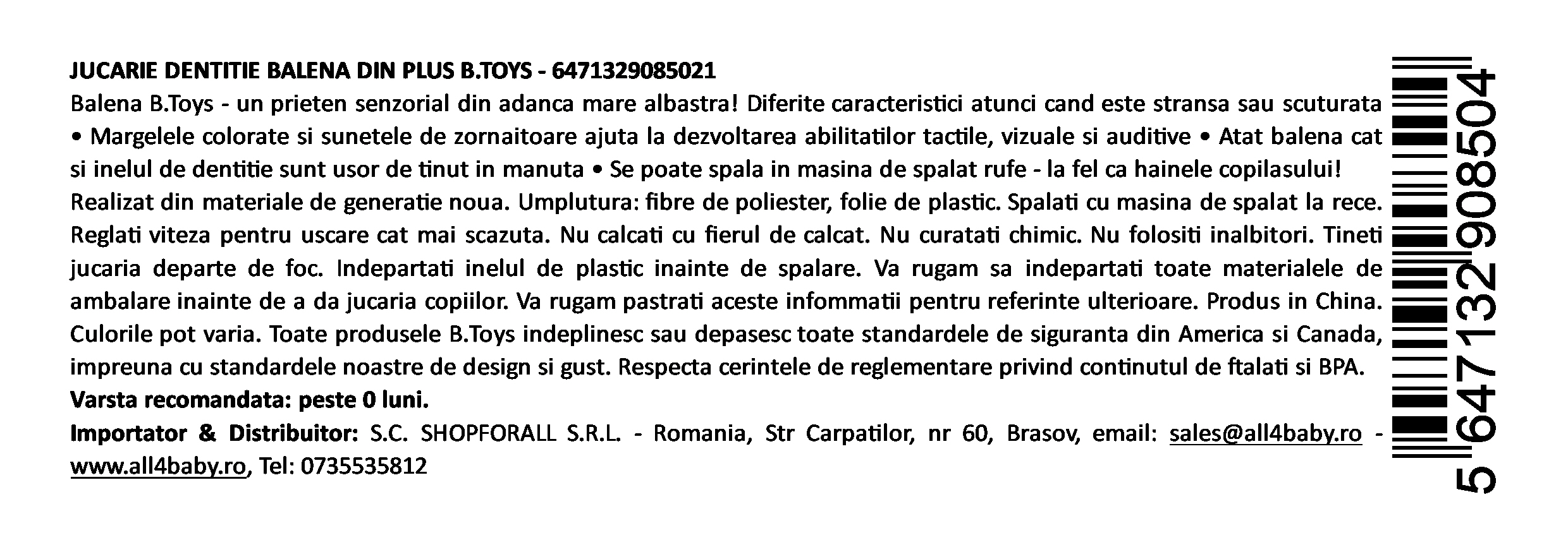 • vârsta recomandată: 0+ luni