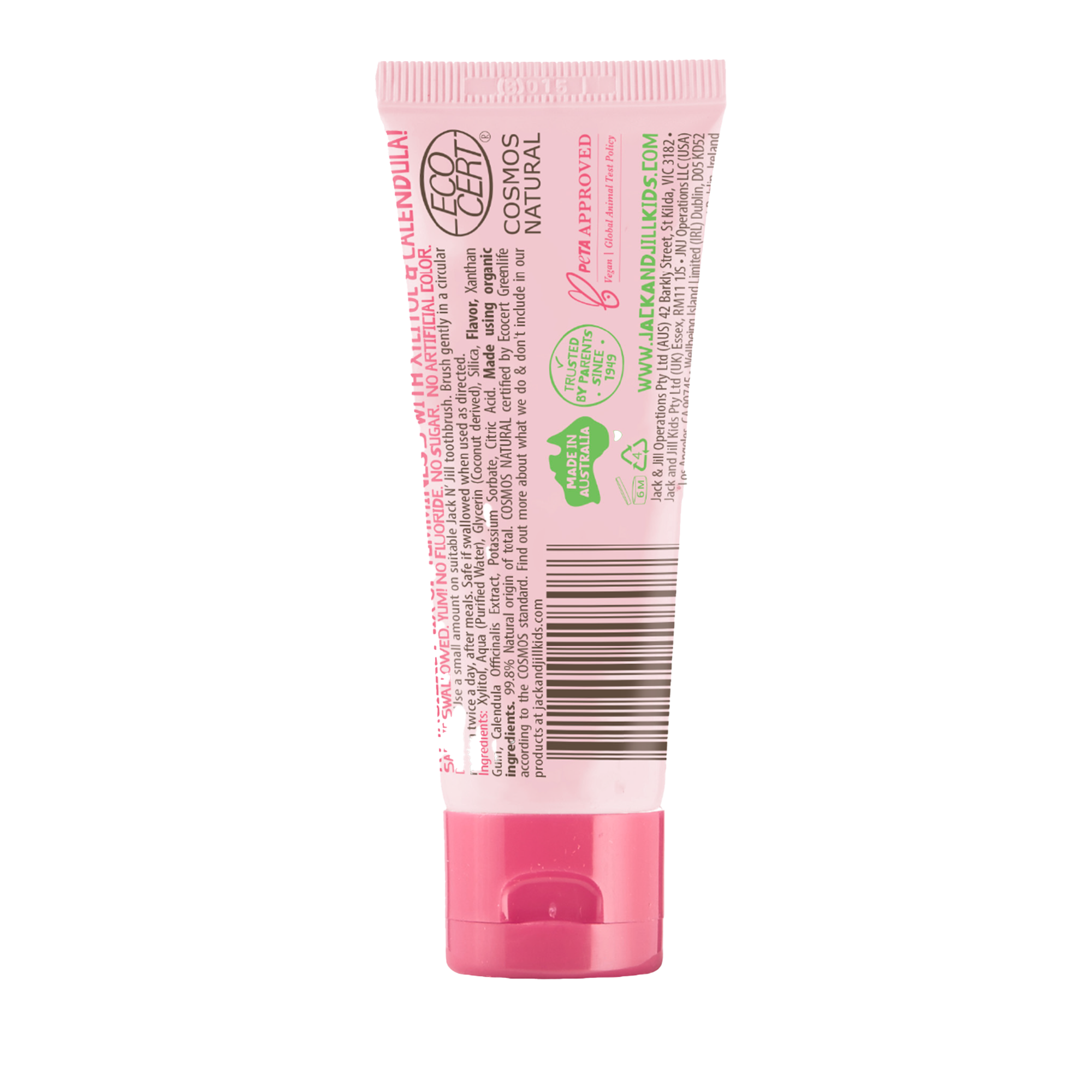 Este fără fluor și sigură la înghițire atunci când este utilizată conform recomandărilor, un avantaj esențial pentru copiii care nu știu încă să scuipe. Aroma naturală de pepene roșu, obținută din fructe organice, este plăcută și atractivă pentru cei mici, transformând spălatul pe dinți într-o experiență distractivă și lipsită de stres.