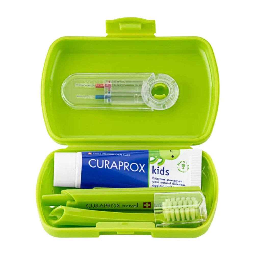 Curaprox Travel Set Kids Green este un set complet și reutilizabil, special conceput pentru copiii cu vârsta între 6 și 12 ani, pentru o igienă orală impecabilă oriunde s-ar afla.