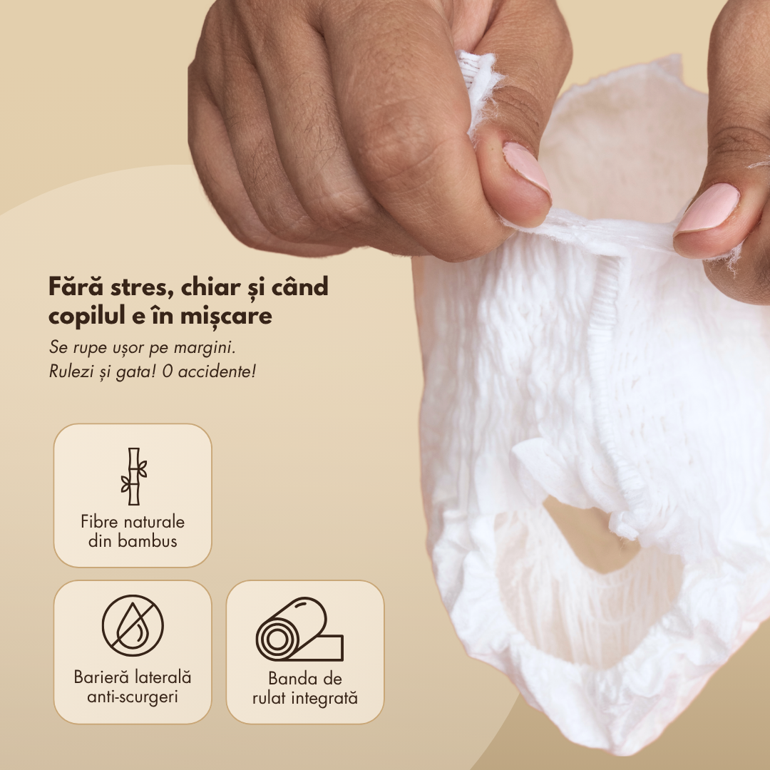 Zuluff chilotei din bambus, Mega Pack, marimea 4, 10-15kg – protecție naturală pentru pielea sensibilă a bebelușului, fără plastic, parfum sau chimicale, cu absorbție rapidă și confort sporit pentru zi și noapte.