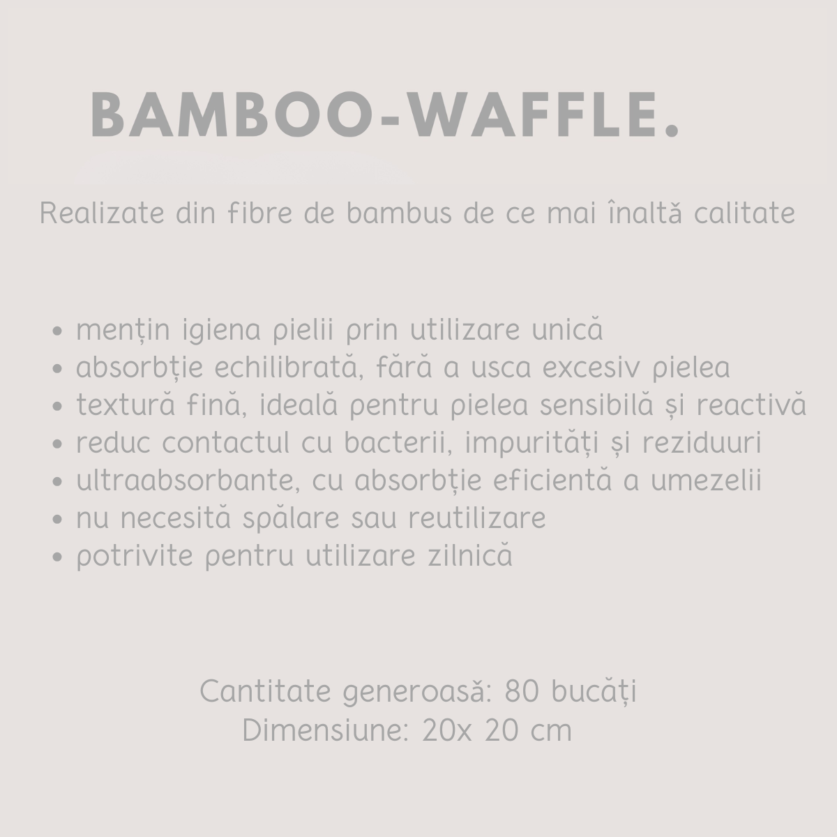 Datorita structurii tip waffle, produsul are o capacitate ridicata de absorbtie, fiind potrivit atat pentru uscarea fetei dupa curatare, cat si pentru demachiere sau indepartarea mastilor cosmetice. Textura moale si non-agresiva face ca aceste prosoape sa fie potrivite inclusiv pentru pielea sensibila sau reactiva. In plus, fibrele de bambus sunt apreciate pentru capacitatea de a absorbi eficient umezeala si mirosurile, contribuind la mentinerea unui nivel ridicat de confort in utilizare.