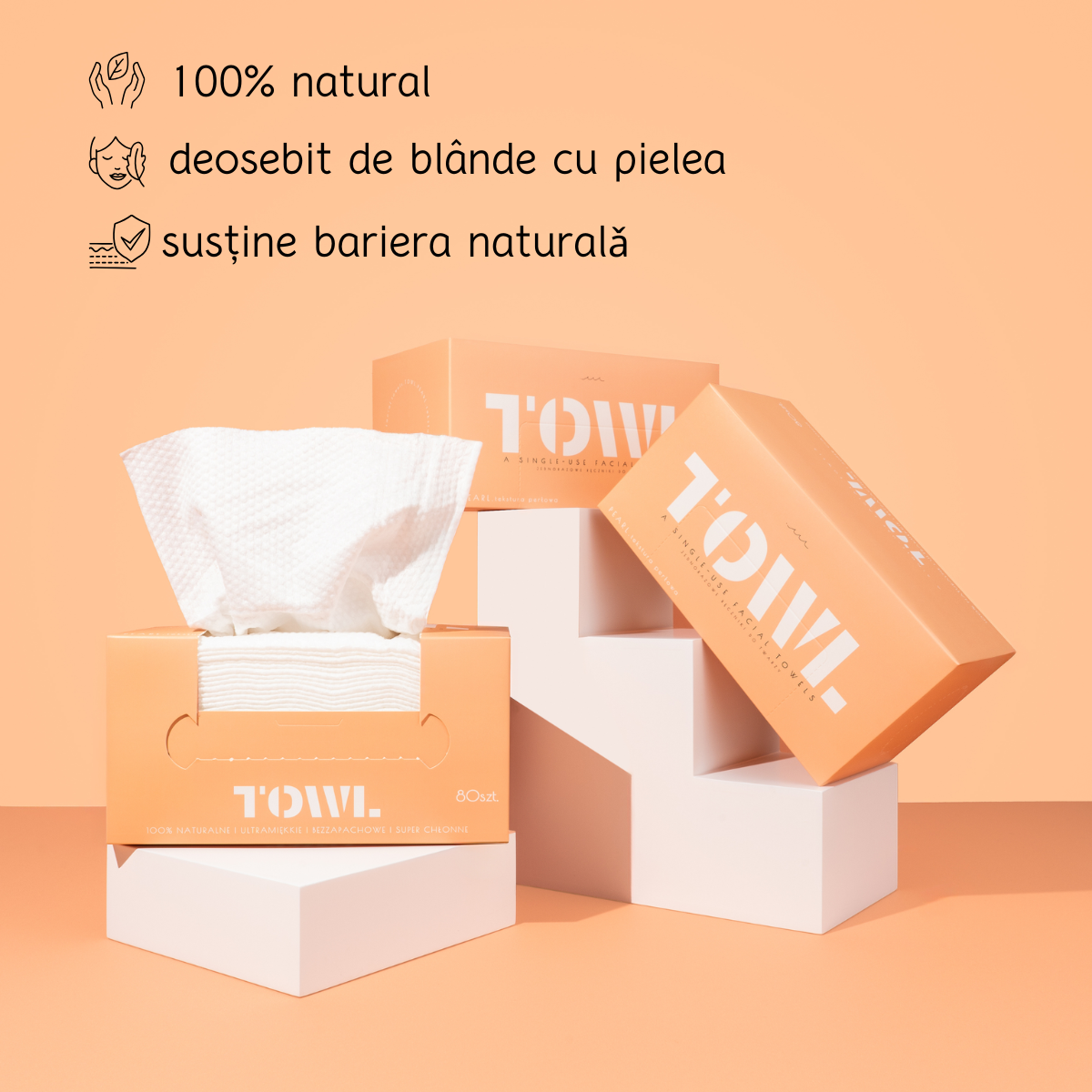 Prosoapele faciale de unica folosinta TOWL PEARL sunt concepute pentru o rutina de ingrijire mai igienica, delicata si practica, mai ales atunci cand cauti o solutie potrivita pentru ten sensibil. Realizate din celuloza vegetala 100% naturala, aceste prosoape ajuta la reducerea contactului pielii cu impuritati, bacterii si reziduuri, oferind in acelasi timp confort la fiecare utilizare.