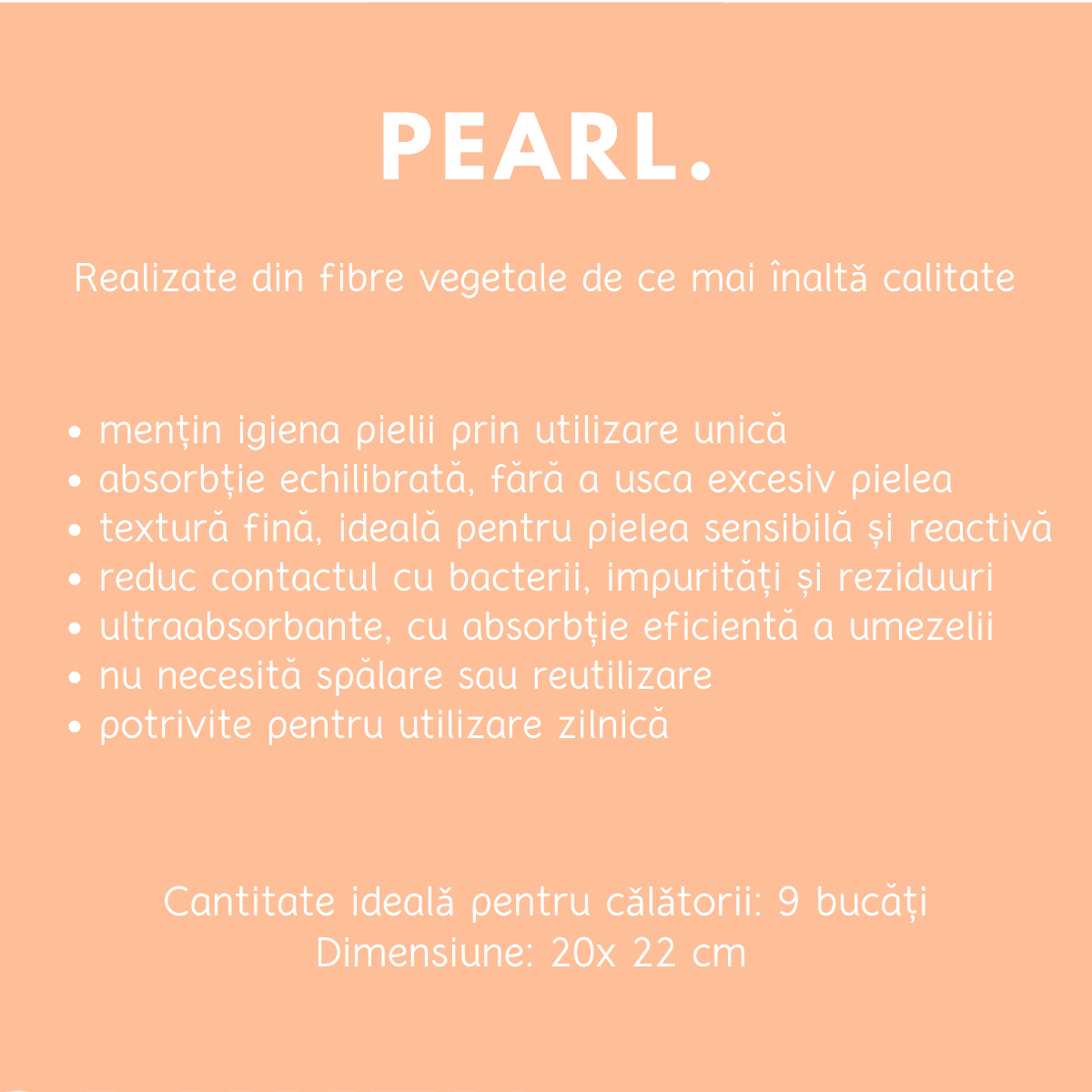 Textura perlata, fina si uniforma, contribuie la o atingere delicata si la o absorbtie eficienta, fara a agresa pielea sau a provoca disconfort. Pot fi utilizate atat uscate, pentru tamponarea fetei dupa curatare, cat si umede, pentru demachiere sau pentru indepartarea mastilor cosmetice. Datorita texturii extrem de moi, sunt potrivite inclusiv pentru pielea sensibila sau reactiva.