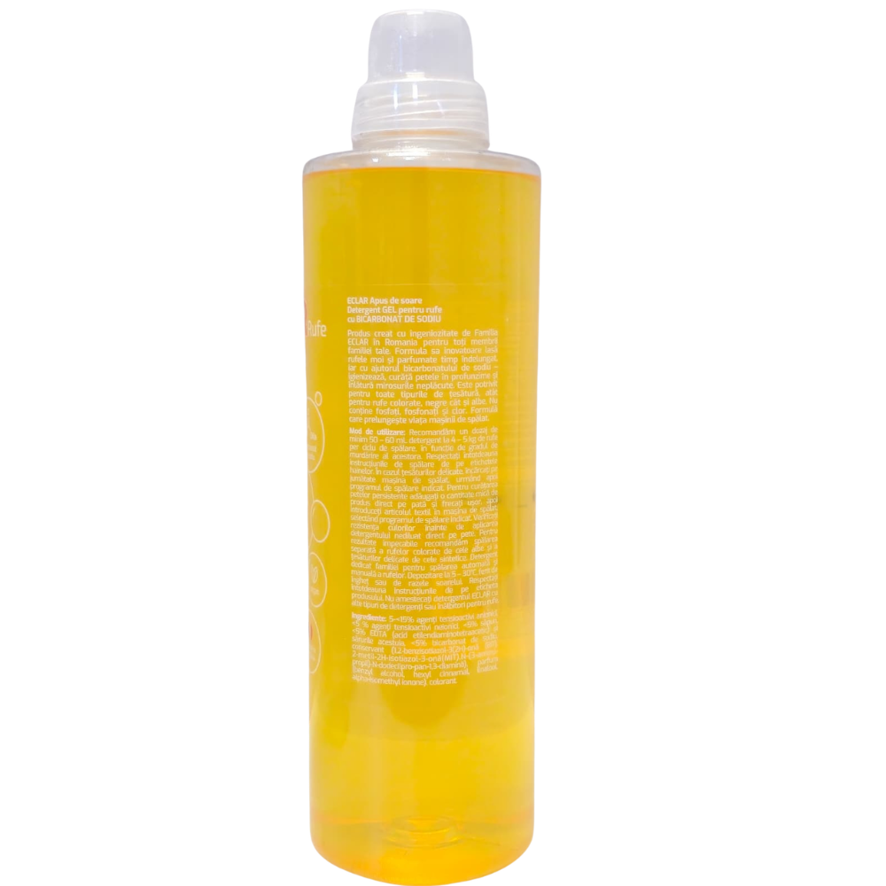 ECLAR Apus de soare 1.5 L este un detergent lichid pentru rufe cu parfum floral relaxant, creat pentru a transforma fiecare spalare intr-un moment de rasfat. Aroma sa delicata si alinatoare ramane impregnata in tesaturi, oferind o prospetime de lunga durata intre spalari. Potrivit pentru rufe albe, negre si colorate, atat pentru spalare automata, cat si manuala.