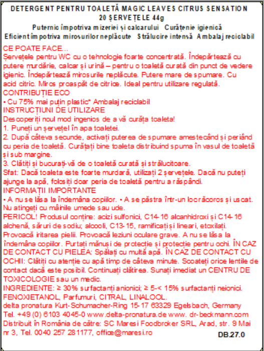 Beckmann Magic Leaves Citrus Sensation indeparteaza eficient calcarul, murdaria si urmele de urina
