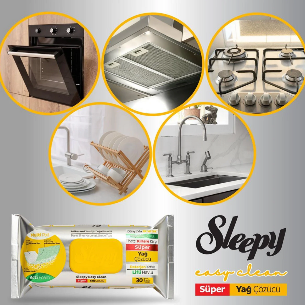 SLEEPY Easy Clean Servetele Umede Super Degresante cu spuma activa sunt special concepute pentru curatarea rapida si eficienta a suprafetelor din bucatarie, unde grasimea si murdaria persistenta apar frecvent. Datorita formulei imbogatite cu ingrediente naturale precum otet alb, bicarbonat de sodiu si acid citric, aceste servetele dizolva eficient depunerile dificile, lasand suprafetele curate si stralucitoare. Structura inovatoare fata-verso, cu spuma activa tensioactiva, transforma curatenia zilnica intr-un proces simplu si rapid, fara efort suplimentar.