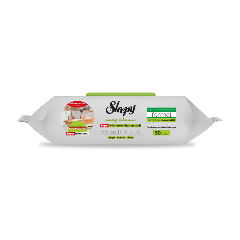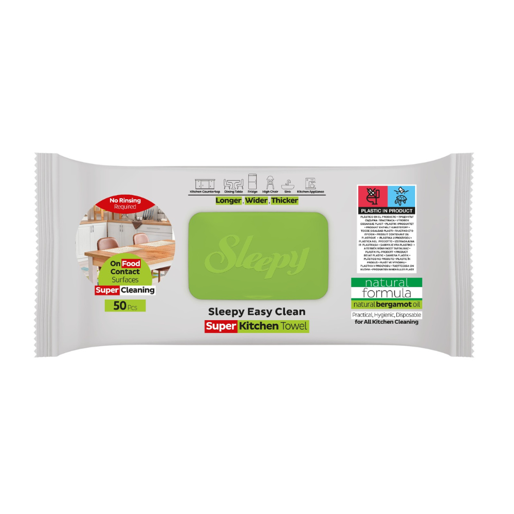 Sleepy Easy Clean Servetele Umede Bergamot Oil pentru Bucatarie sunt solutia potrivita pentru curatarea rapida si igienica a tuturor suprafetelor de lucru din bucatarie. Formula lor cu putere mare de degresare si ulei natural de grapefruit elimina murdaria, grasimea si petele dificile fara sa fie nevoie de clatire. Servetelele sunt mai lungi, mai late si mai groase decat variantele obisnuite, asigurand o curatare eficienta a blaturilor, meselor, electrocasnicelor si zonelor de contact cu alimentele. Lasa suprafetele curate, proaspete si placut parfumate, fiind perfecte pentru utilizare zilnica in orice bucatarie.