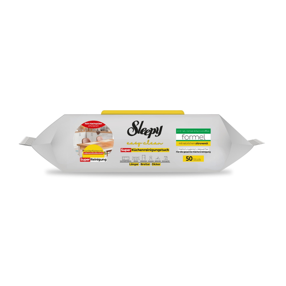 Sleepy Easy Clean Servetele Umede Lemon Oil pentru Bucatarie sunt solutia potrivita pentru curatarea rapida si igienica a tuturor suprafetelor de lucru din bucatarie. Formula lor cu putere mare de degresare si ulei natural de grapefruit elimina murdaria, grasimea si petele dificile fara sa fie nevoie de clatire. Servetelele sunt mai lungi, mai late si mai groase decat variantele obisnuite, asigurand o curatare eficienta a blaturilor, meselor, electrocasnicelor si zonelor de contact cu alimentele. Lasa suprafetele curate, proaspete si placut parfumate, fiind perfecte pentru utilizare zilnica in orice bucatarie.