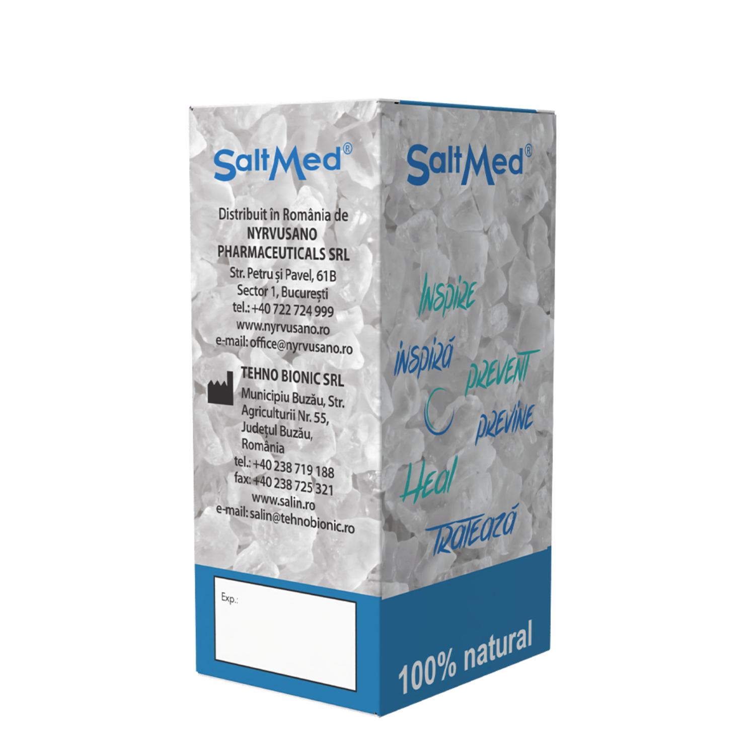 SaltMed contine microparticule de sare cu caracteristici controlate obtinute printr-o tehnologie inovatoare din sare naturala de mina.