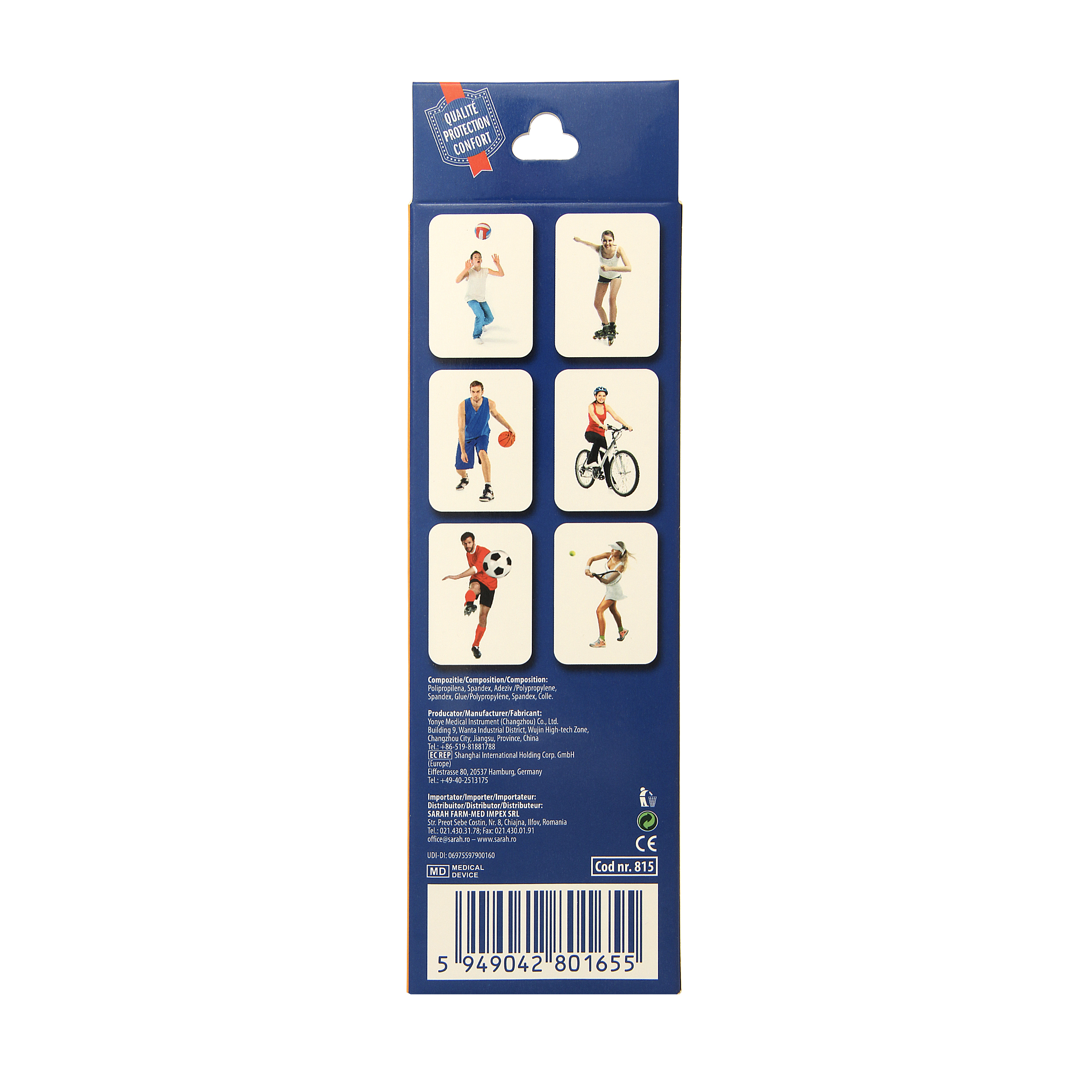 SANA ProSport Bandaj elastic autoadeziv colorat 15 cm x 4.5 m este un bandaj compresiv profesional, conceput pentru sustinerea articulatiilor si muschilor in caz de entorse, intinderi de tendoane, traumatisme sportive sau afectiuni venoase precum varicele. Datorita proprietatii autoadezive, bandajul se fixeaza sigur fara a necesita sisteme suplimentare de prindere si fara a se lipi de piele sau par. Materialul poros permite circulatia aerului, oferind confort sporit chiar si in utilizari indelungate, fiind ideal atat pentru sportivi, cat si pentru uz medical sau casnic.