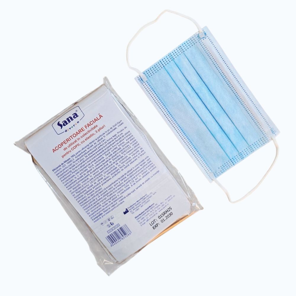 Eficiență de filtrare: 70% pentru eficiența filtrării la particule în jur de 3(±0.5)µm conform ISO 16890-2. Acoperitoare facială de utilizat în colectivitate, create special pentru copii. Nu este potrivită pentru copiii sub 3 ani. Acoperitoare facială cu 3 pliuri. Se adaptează perfect pe forma feței.