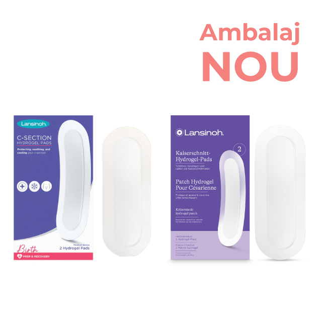 Plasturii cu hidrogel Lansinoh pentru cezariană, protejează incizia cezarienei, reducând frecarea cu îmbrăcămintea, oferind un efect de răcire și calmare la aplicare.