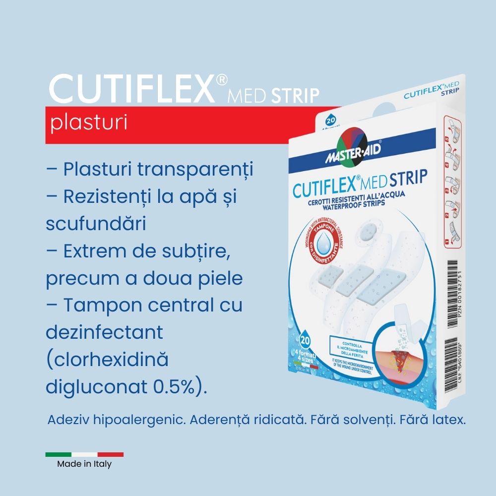 Plasturi transparenți, rezistenți la apă Cutiflex Strip Asortat 4 mărimi. Plasture transparent impermeabil ultra fin împotriva apei și bacteriilor.