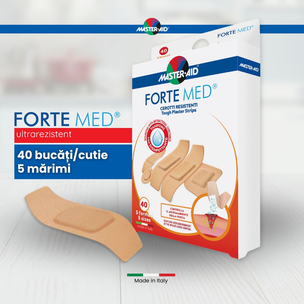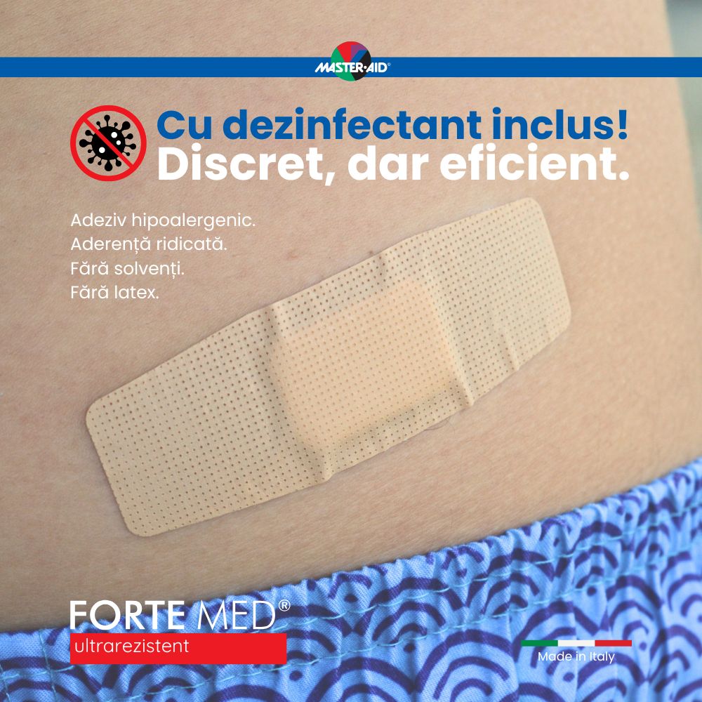 Plasture foarte rezistent, de culoarea pielii. Tampon central cu dezinfectant.