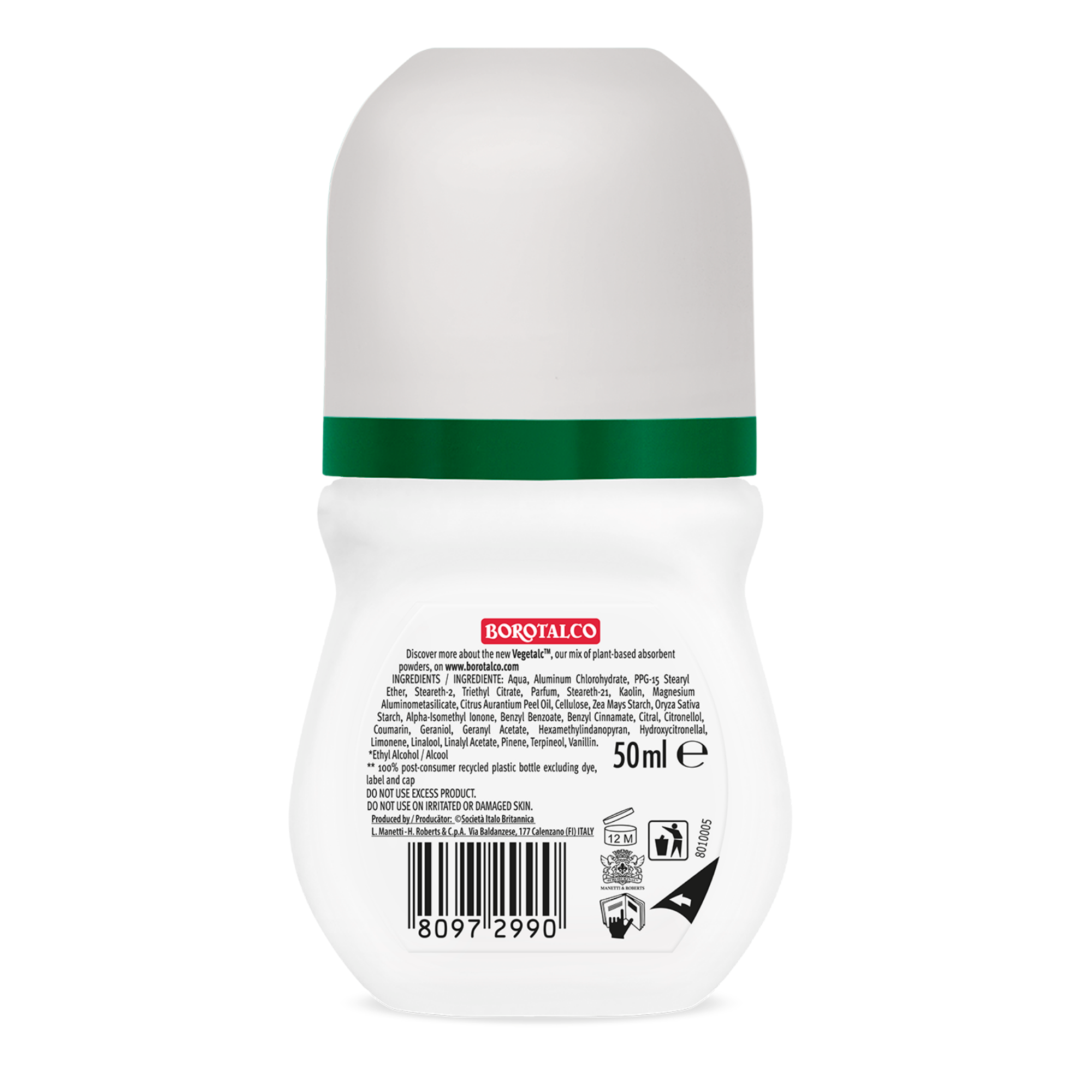 Parfum unic și inconfundabil, specific Borotalco, ce combină prospețimea citricelor proaspete pe o bază floral-pudrată. Parfum clasic italian, inconfundabil din 1904.
