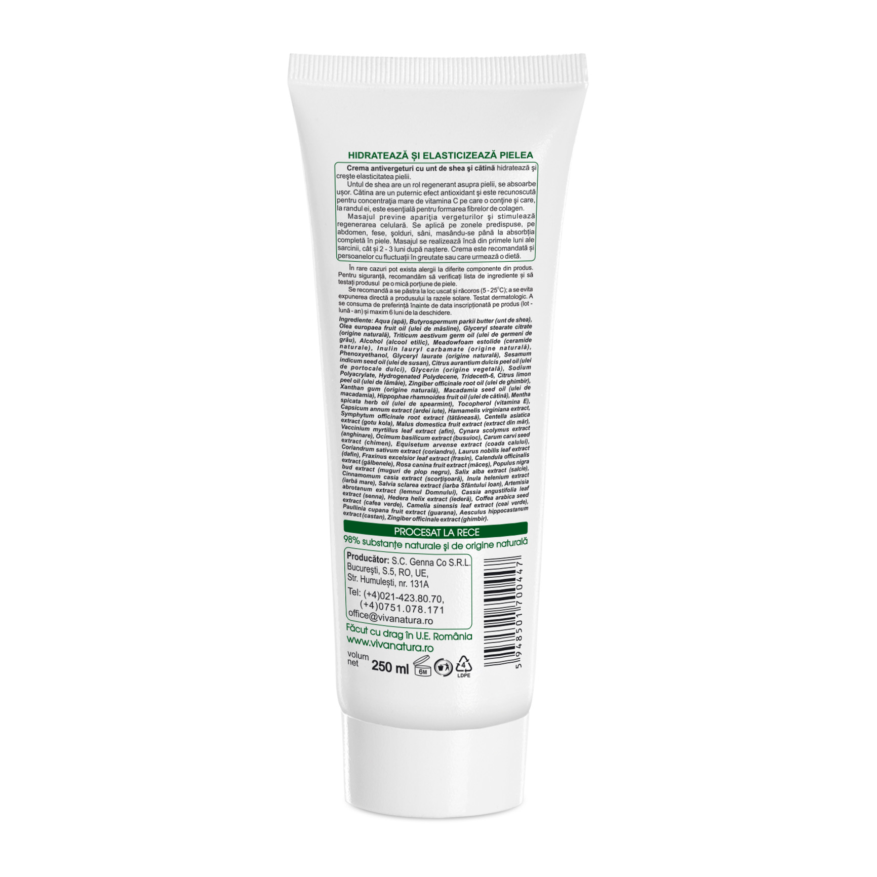 HIDRATEAZĂ ŞI ELASTICIZEAZĂ PIELEA Crema antivergeturi cu unt de shea şi cătină hidratează şi creşte elasticitatea pielii.