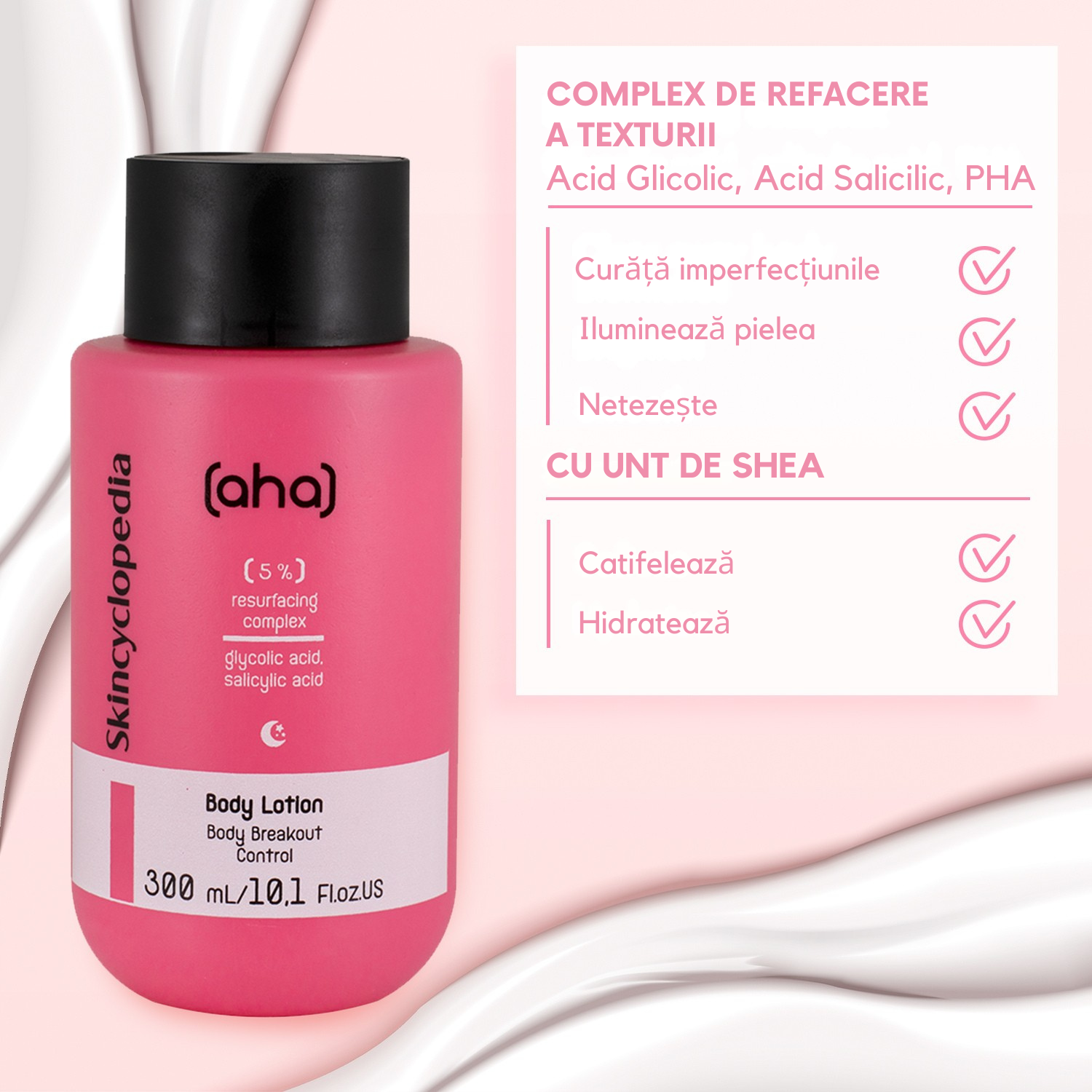 Skincyclopedia Lotiune de Corp 5% Complex de Refacere cu AHA, BHA și PHA este alegerea ideală pentru pielea cu textură neuniformă, pori blocați sau foliculită. Conține acid glicolic, acid salicilic, acid citric și gluconolactonă pentru un efect exfoliant progresiv și blând. Netezește, uniformizează și redă strălucirea pielii, fiind potrivită pentru toate tipurile de piele. Formulă testată dermatologic.