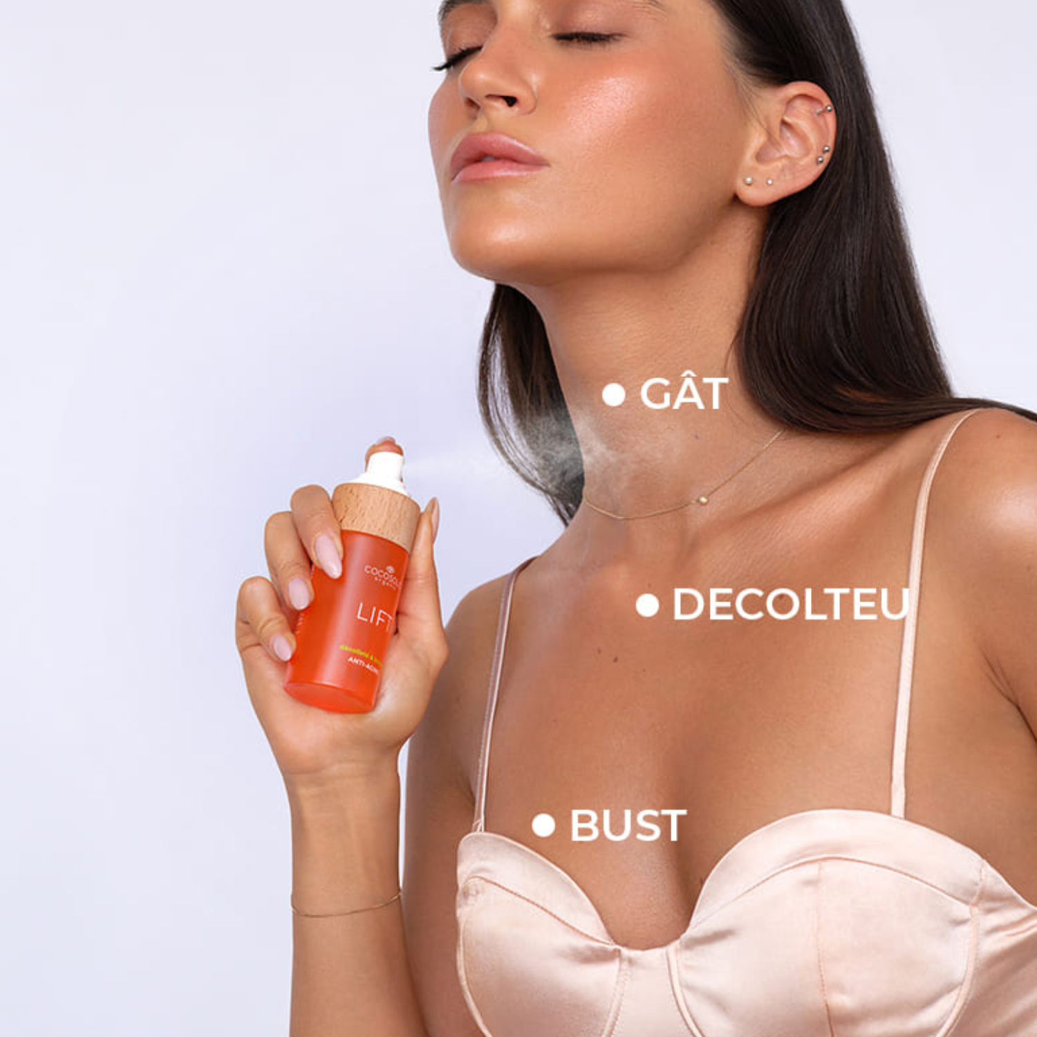 Unde: gât, decolteu, bust • Când: dimineața și seara