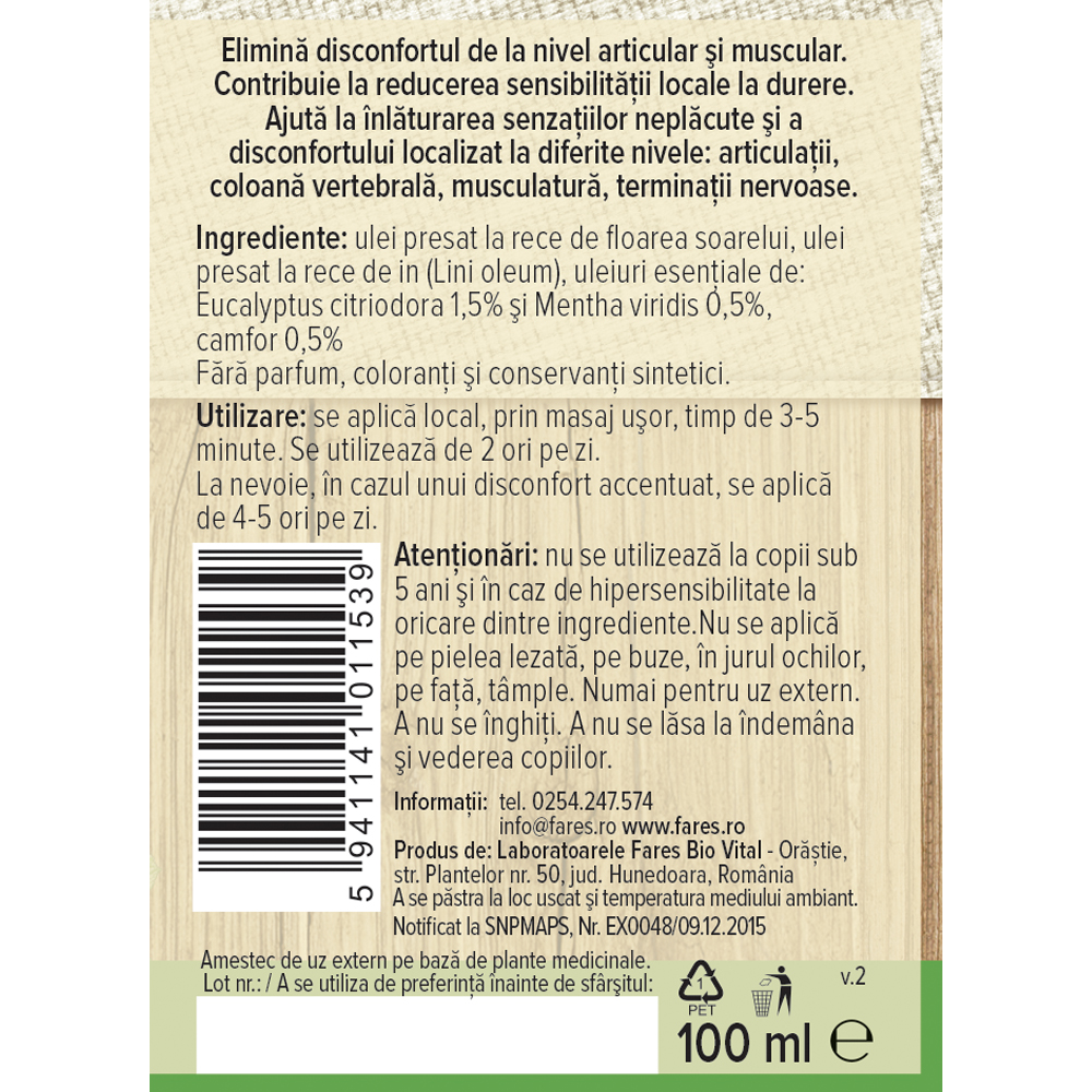 Fitodolor ulei calmant elimina disconfortul de la nivel articular si muscular. Are un miros foarte placut, de lamai, datorat uleiului de Eucalyptus citriodora, cunoscut in Australia ca „eucaliptul cu parfum de lamaie”. Ulei calmant, uz extern.