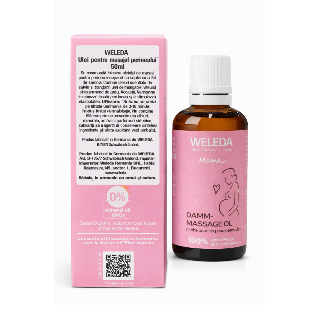 Se recomandă folosirea uleiului de masaj pentru perineu începând cu săptămâna 34 de sarcină. Conține uleiuri esențiale de salvie și trandafir, ulei de migdale, vitamina E și ulei din germeni de grâu. Această compoziție relaxează țesutul perineului și îi stimulează elasticitatea.