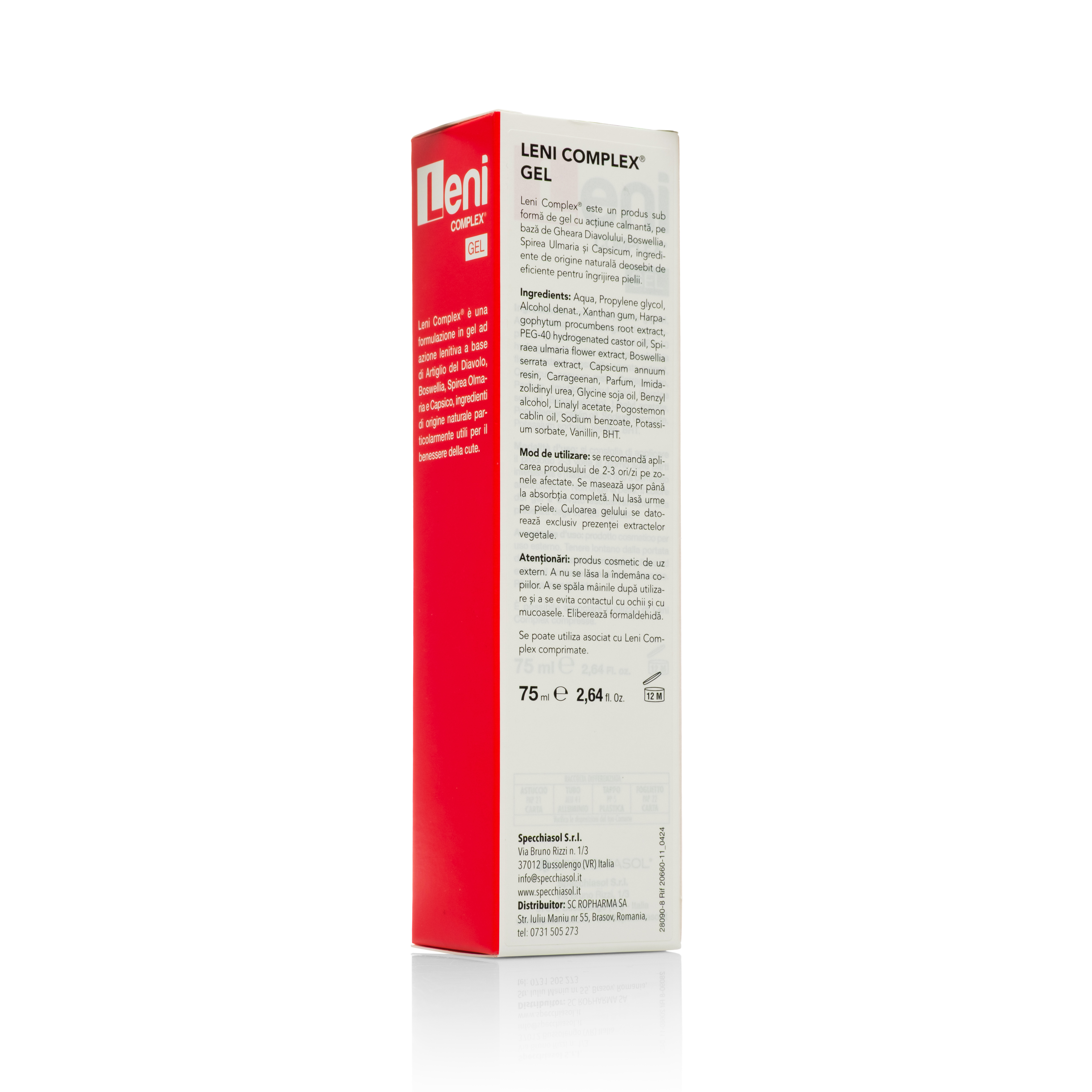 Leni Complex® este un produs sub formă de gel cu acțiune calmantă, pe bază de Gheara Diavolului, Boswellia, Spirea Ulmaria și Capsicum, ingrediente de origine naturală deosebit de eficiente pentru îngrijirea pielii.