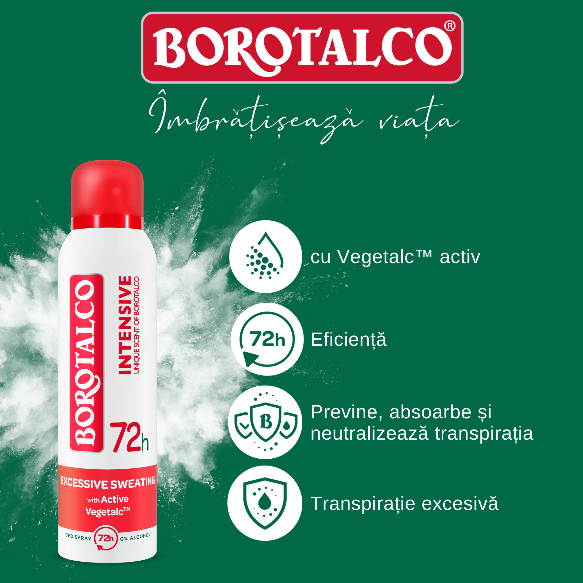 Borotalco Intensive - tripla protectie impotriva transpiratiei de pana la 72h.