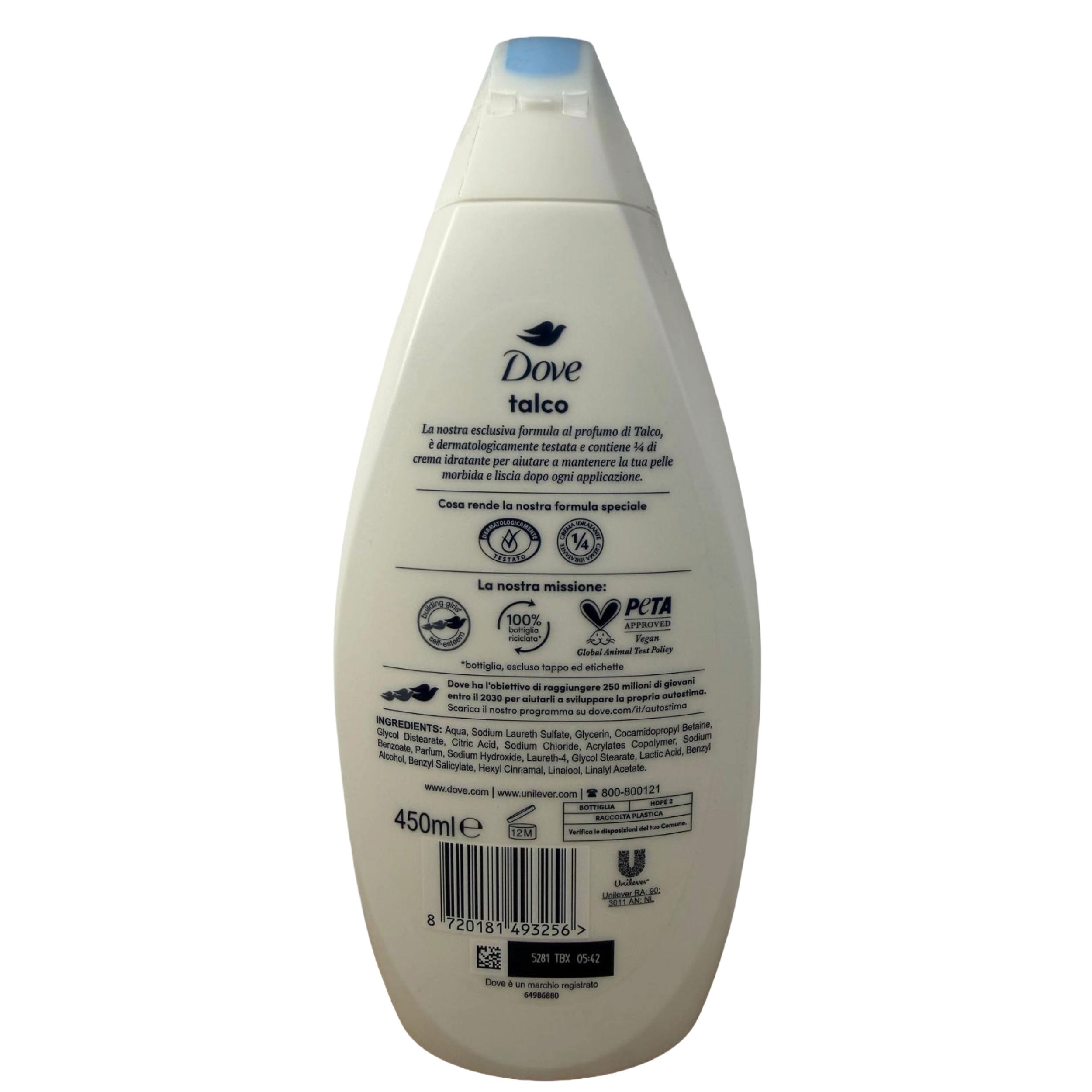 Dove Talco Body Wash oferă o experiență de curățare blândă cu o aromă delicată de pudră care lasă pielea parfumată și catifelată. Formula cu NutriumMoisture™ combină hidratanții naturali cu îngrijitorii blânzi pentru a curăța eficient fără a usca pielea, oferind o senzație de prospețime și confort de lungă durată.