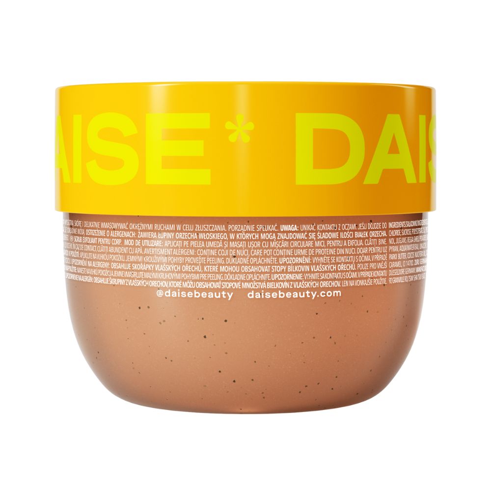 Daise Scrub exfoliant pentru corp Vanilla Glow este un exfoliant regenerant, creat pentru a reda pielii netezimea si stralucirea naturala. Formula sa exfolianta indeparteaza delicat celulele moarte, lasand pielea moale, catifelata si subtil parfumata cu o aroma calda de vanilie. Ideal pentru ritualul de dus sau baie, scrubul este potrivit pentru toate tipurile de piele si transforma exfolierea intr-un moment de rasfat.