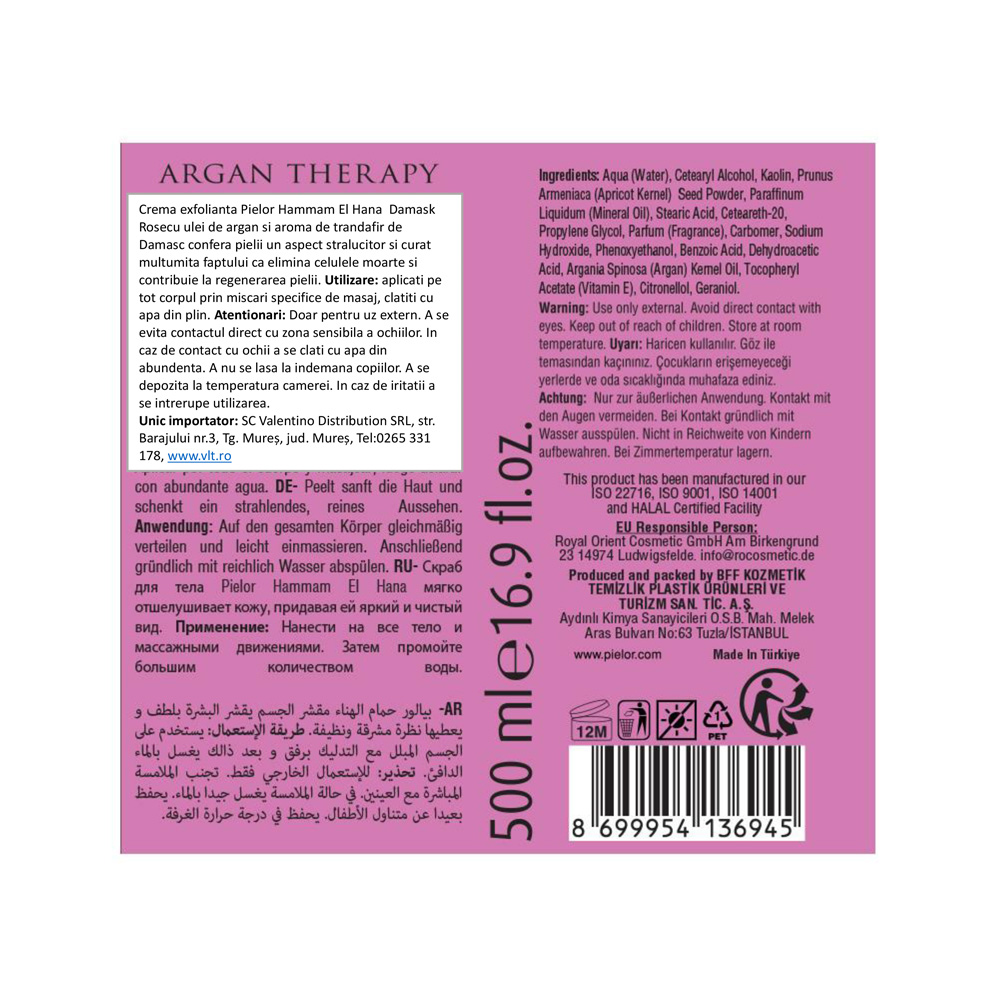 Crema exfolianta cu ulei de argan si aroma de trandafir de Damasc Pielor Hammam El Hana confera pielii un aspect stralucitor si curat datorita faptului ca elimina celulele moarte si contribuie la regenerarea pielii.