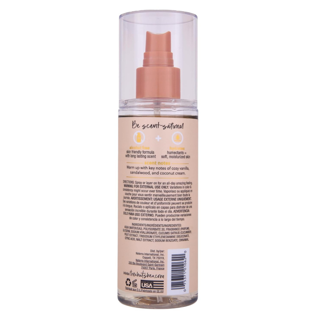 Răsfață-È›i simÈ›urile cu Tree Hut Mist parfumat cu vanilie, un spray hidratant pentru corp fără alcool, creat pentru a oferi pielii tale hidratare intensă È™i un parfum cald, cremos È™i irezistibil. Infuzat cu glicerină È™i note senzuale de vanilie, lemn de santal È™i cremă de cocos, acest mist este soluÈ›ia perfectă pentru o piele fină, hrănită È™i frumos parfumată, în orice moment al zilei.