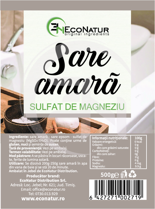 Sare amara (Sulfat de magneziu). Compoziție: NaHCO3-99.3%, Na2CO3-0.3%.