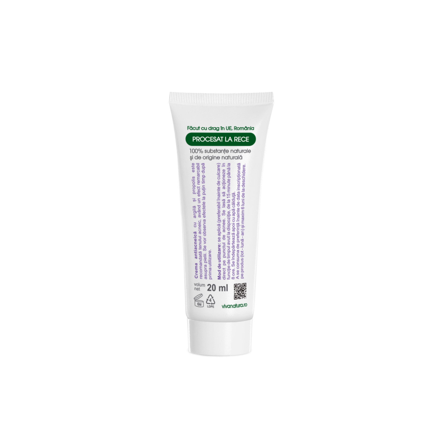Crema antiacneică cu argilă şi propolis este recomandată tenului acneic, având un efect remarcabil asupra pielii. Produsul este superactiv şi benefic datorită ingredientelor 100% naturale: argilă, propolis, argint, uleiuri esenţiale şi extracte din plante. Argila ajută la deblocarea porilor şi la reducerea acneei, extractele din plante au rol astringent. Se vor observa efectele active pe punctul de acnee la puțin timp după prima utilizare.