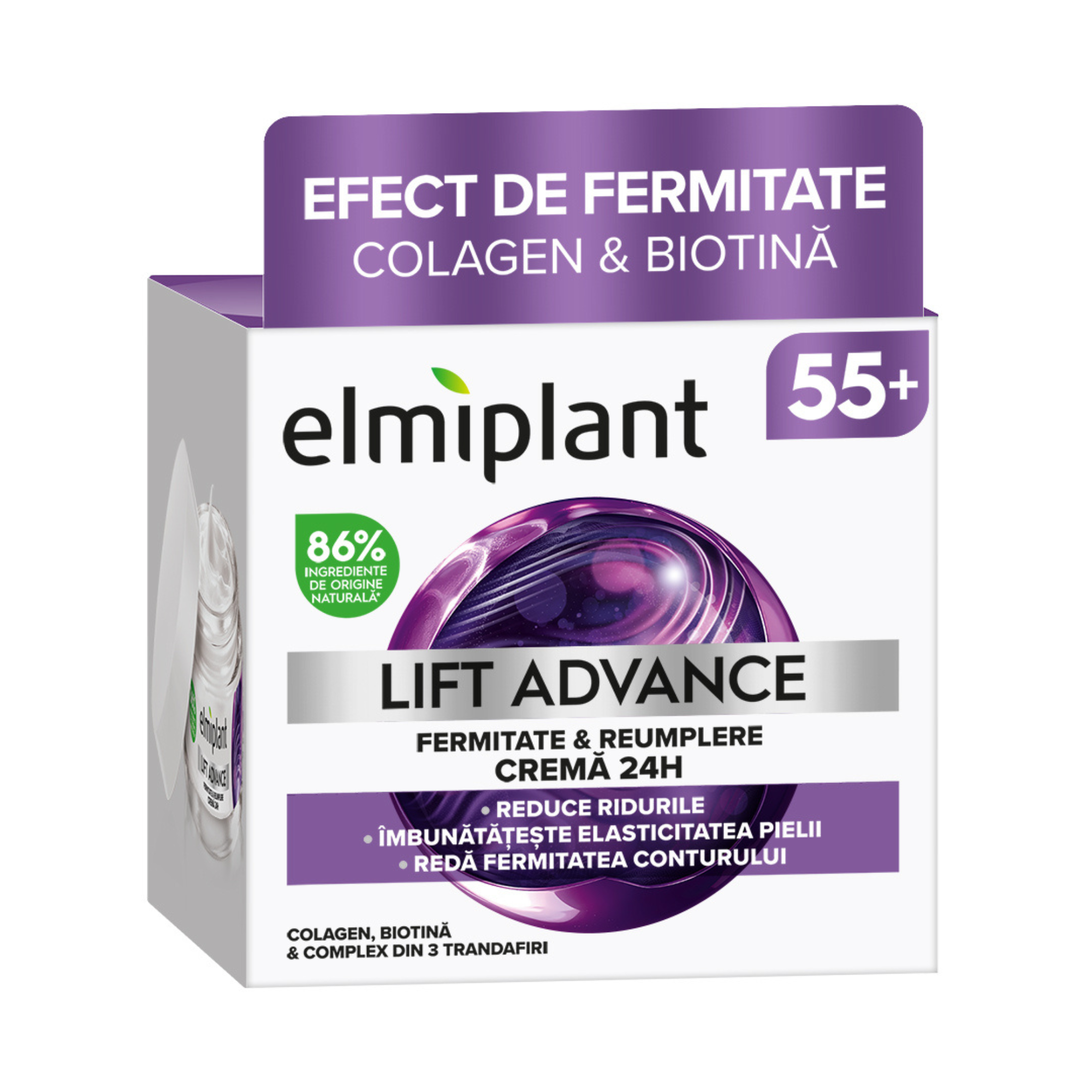 Elmiplant Crema de fata Lift Advance 24h pentru fermitate & reumplere, 55+, 50 ml este o crema anti-aging cu actiune completa, special dezvoltata pentru pielea matura, ce contribuie la imbunatatirea fermitatii, densitatii si hidratarii pielii.