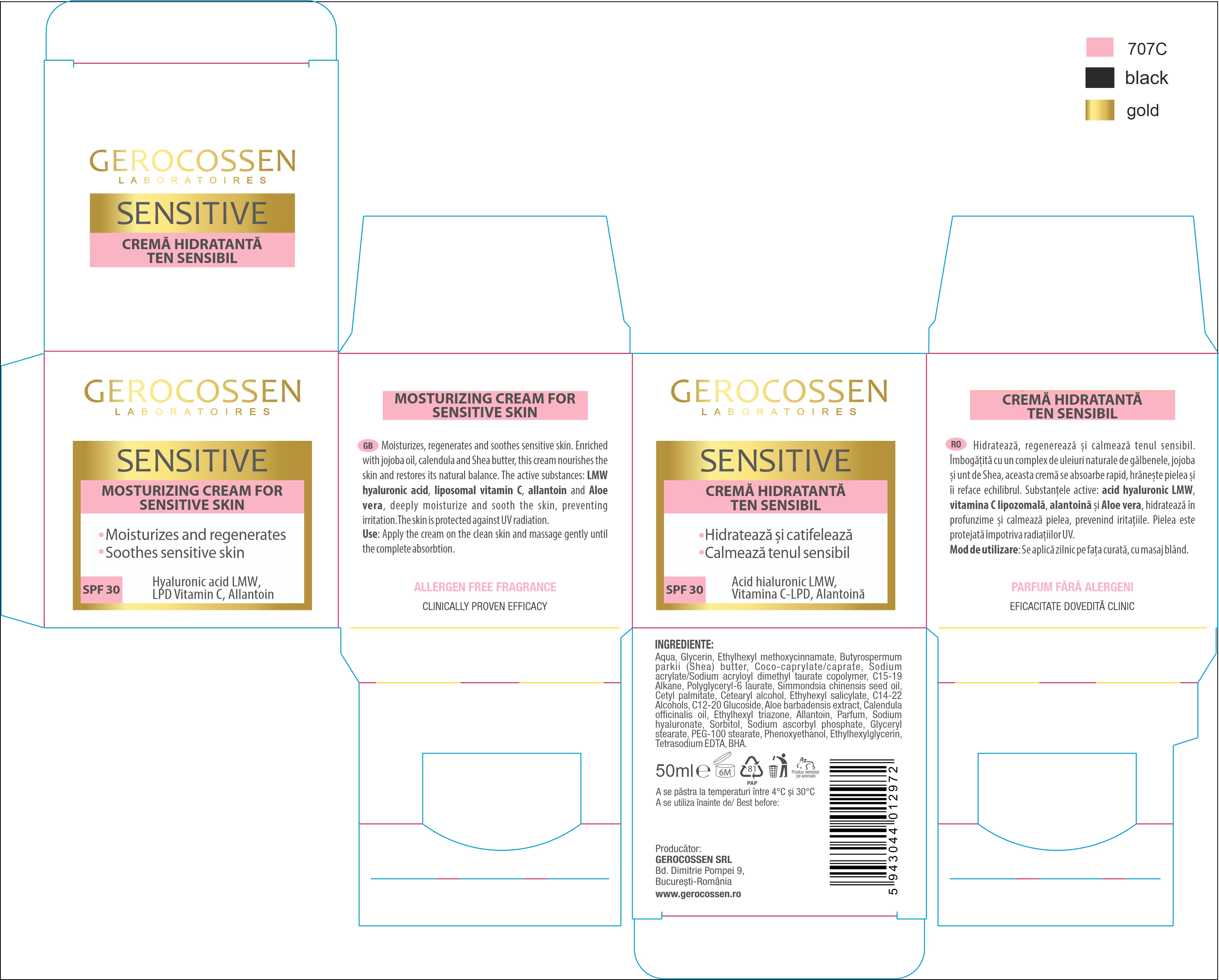 Crema hidratantă Gerocossen Sensitive SPF 30 este special formulată pentru tenul sensibil, oferind hidratare, hrănire și protecție UV zilnică.