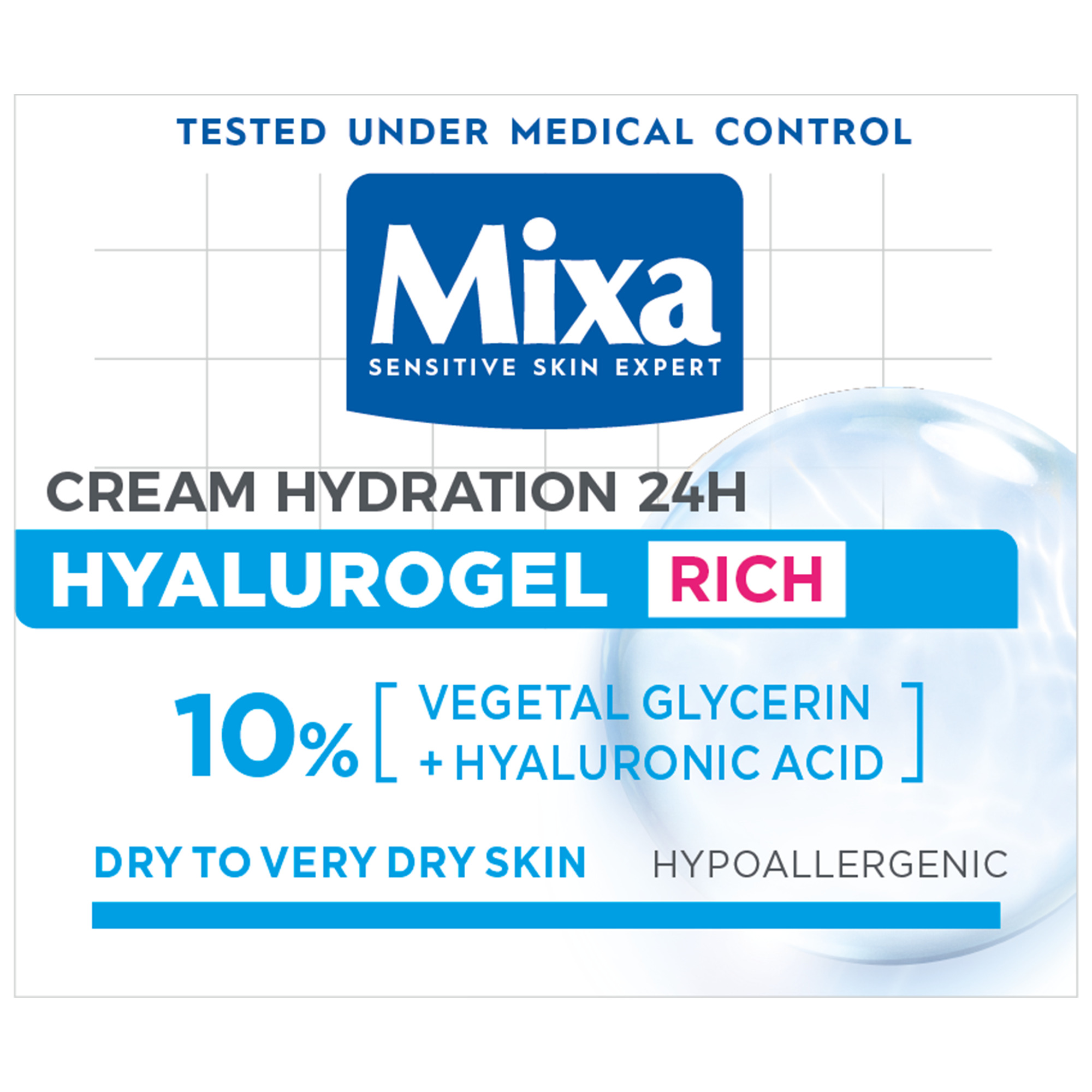 Mixa Hyalurogel Rich cu Acid Hialuronic si Glicerina este special conceputa pentru persoanele cu ten sensibil deshidratat, uscat si foarte uscat.