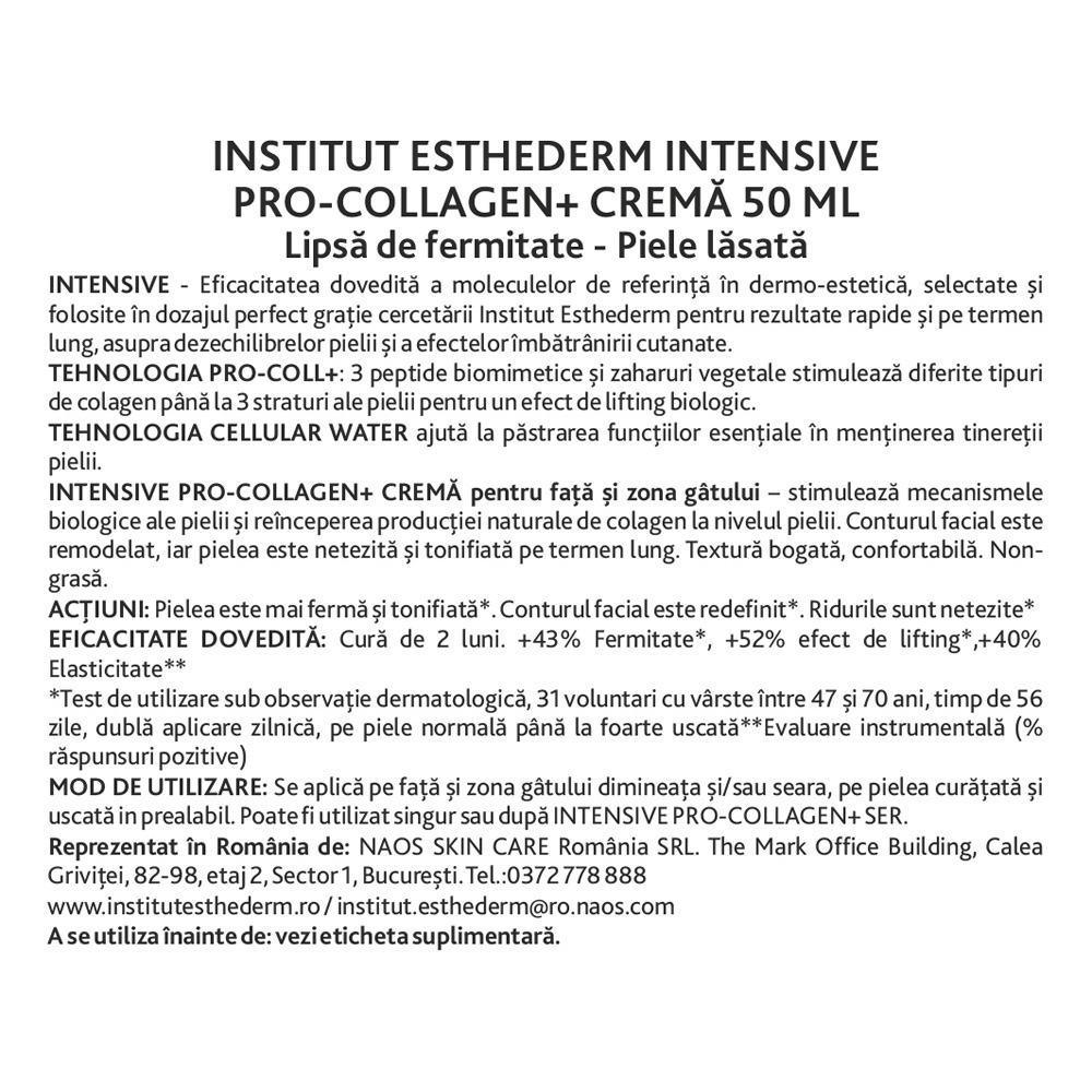 Crema Intensive Pro-Collagen+ stimulează mecanismele biologice ale pielii și activează producția naturală de colagen, contribuind la fermitatea și tonifierea pielii. Formula avansată, bazată pe tehnologii inovatoare, redefinește conturul facial și netezește ridurile, oferind un efect de lifting biologic.