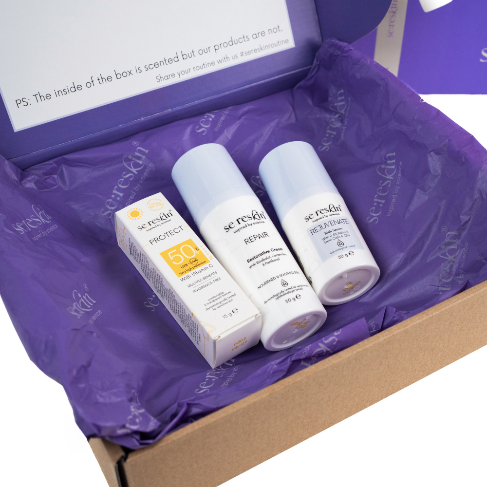 Kit anti-aging Rejuvenate + Repair + Protect SPF50+ este o rutina completa de ingrijire faciala, conceputa pentru reducerea ridurilor, repararea barierei cutanate si protectia zilnica impotriva radiatiilor UV. Setul combina un ser cu retinol si antioxidanti, o crema intens reparatoare si o crema cu protectie solara avansata, fiind ideal pentru ten sensibil, uscat, matur sau reactiv. Utilizat constant, ajuta la regenerarea pielii, calmarea iritatiilor si prevenirea imbatranirii premature.