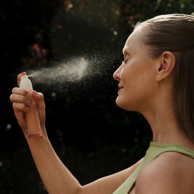 • Inchideti ochii si pulverizati uniform pe ten.