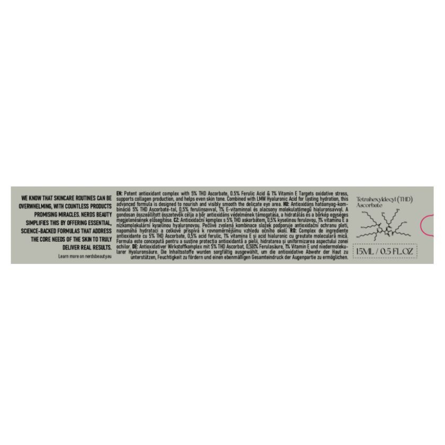 Conține 5% THD Ascorbat (Vitamina C stabilizată), un derivat performant care susține sinteza colagenului și ajută la reducerea aspectului tern și a tonului neuniform.