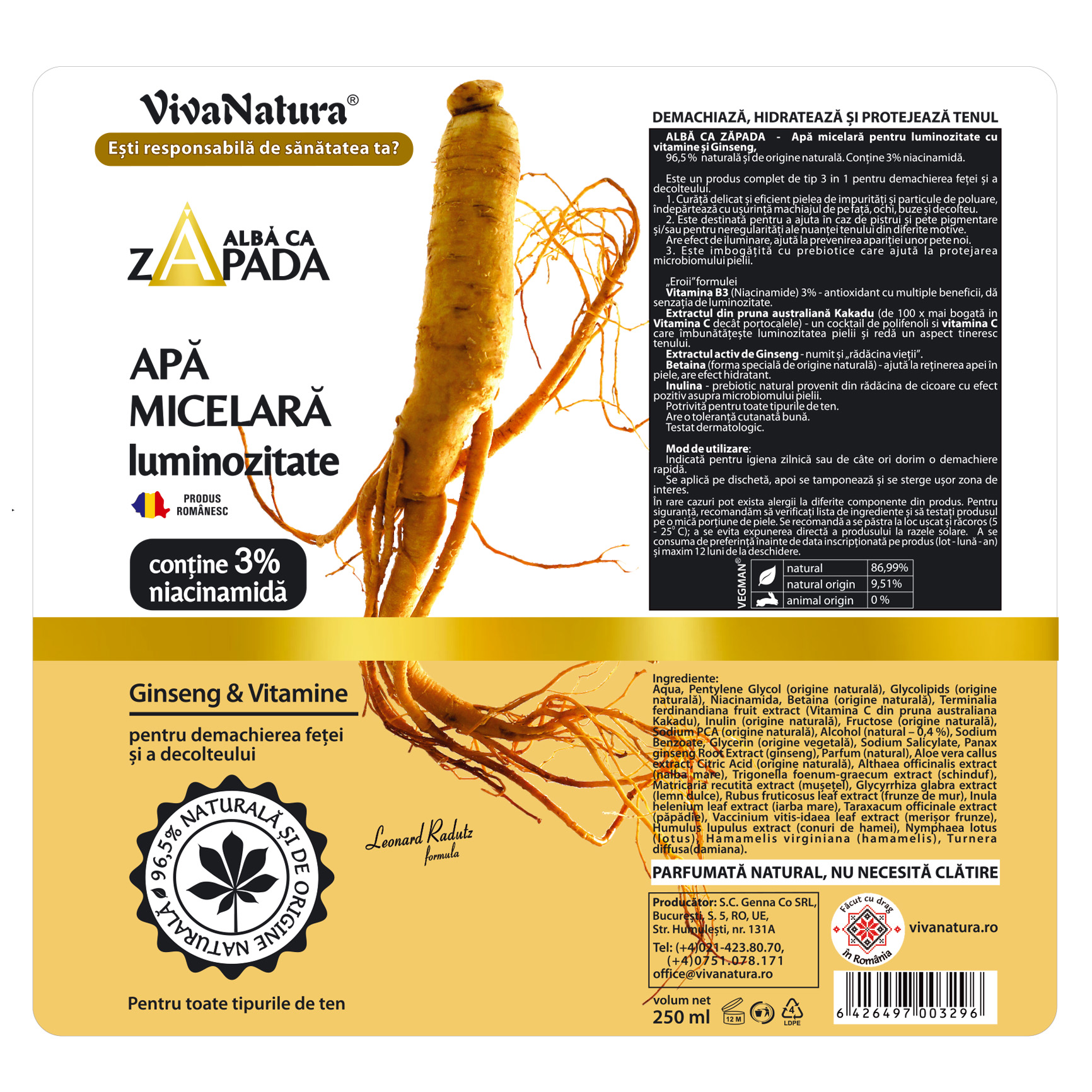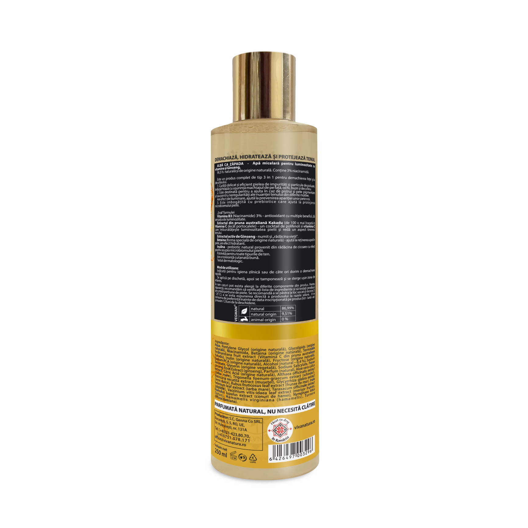 96,5% naturală şi de origine naturală. Conține 3% niacinamidă.