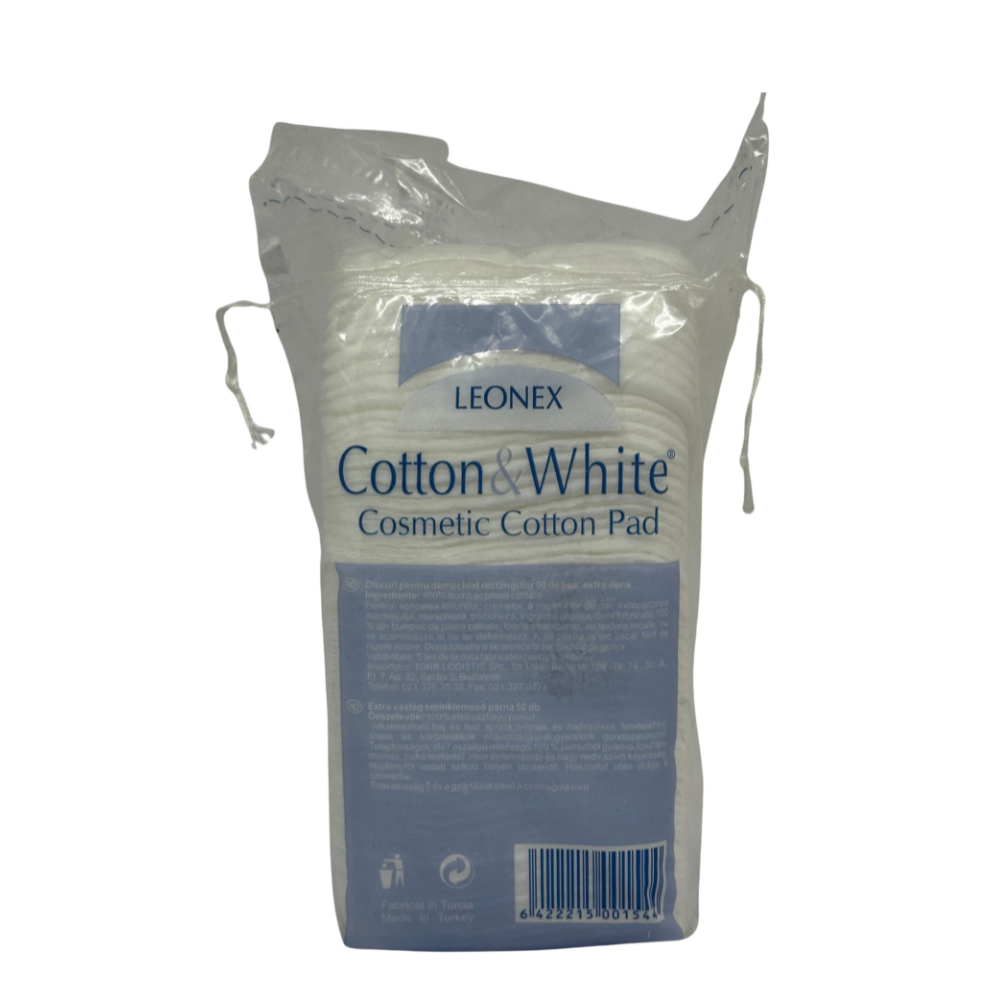 Dischete demachiante din bumbac, formă rectangulară, potrivite pentru utilizări cosmetice variate.