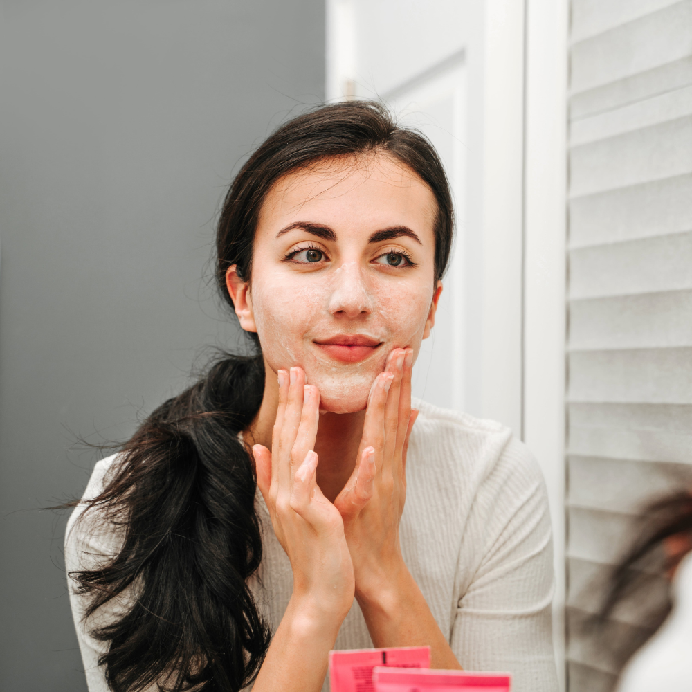 • Aplică o cantitate adecvată de gel pe pielea umedă a feței.
