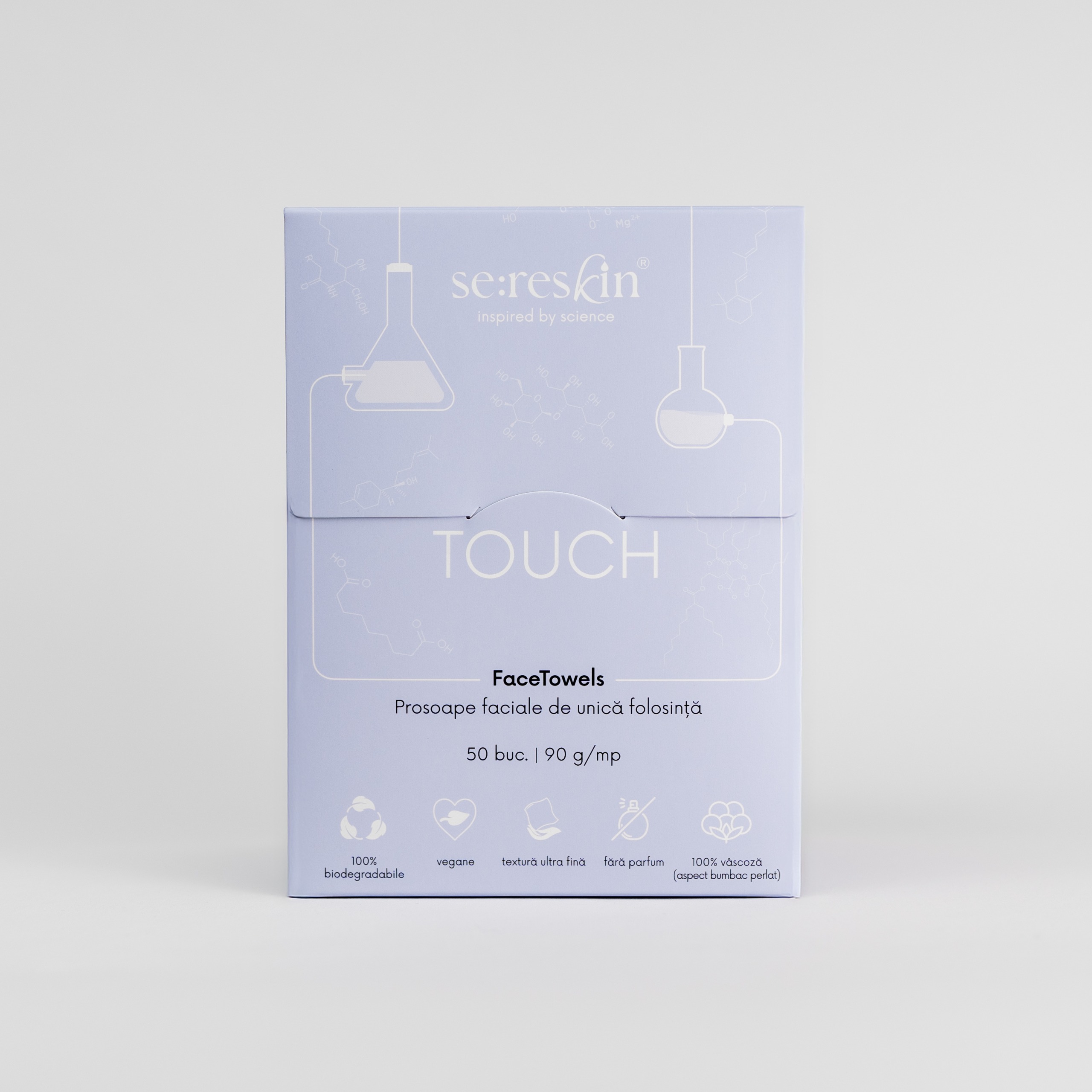 Touch Face Towels – Prosoape faciale de unica folosinta Sereskin reprezinta alternativa moderna, igienica si sustenabila la prosoapele clasice din bumbac. Realizate din 100% vascoza din fibre naturale, cu textura perlata si densitate ridicata (90 g/mp), aceste prosoape sunt ultra-fine, rezistente si foarte absorbante, fiind ideale pentru o rutina de skincare curata si sigura.