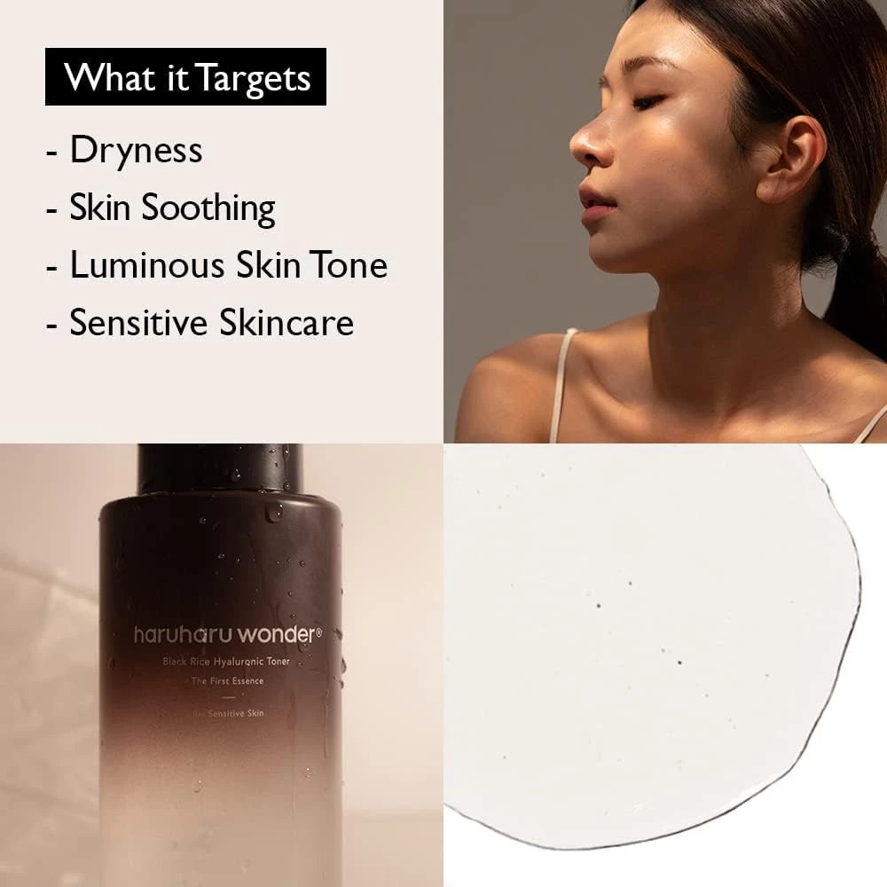 Acest toner hidratant, fara alcool si fara parfum HARUHARU WONDER este creat pentru piele sensibila care are nevoie de hidratare intensa si un pas de pregatire bland in rutina zilnica. Formula tip esenta combina acid hialuronic si beta-glucan pentru a sustine mentinerea apei in piele si pentru a reduce senzatia de uscaciune, in timp ce extractul de orez negru fermentat contribuie la protectie antioxidanta si aspect revitalizat. Extractele vegetale, inclusiv ginseng, scutellaria si bambus, completeaza formula pentru confort si echilibru, iar textura se absoarbe rapid fara reziduuri lipicioase.