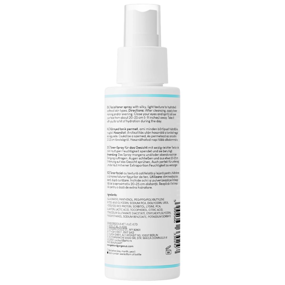 Este un toner facial matasos cu 5% Pantenol + Factori naturali de hidratare (NMF) pentru hidratarea si calmarea tuturor tipurilor de piele;